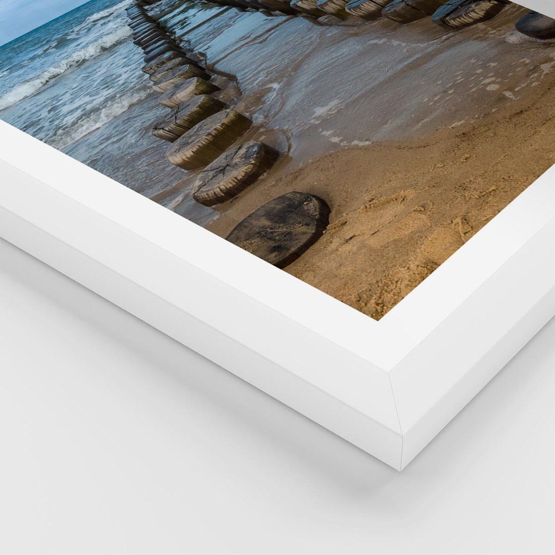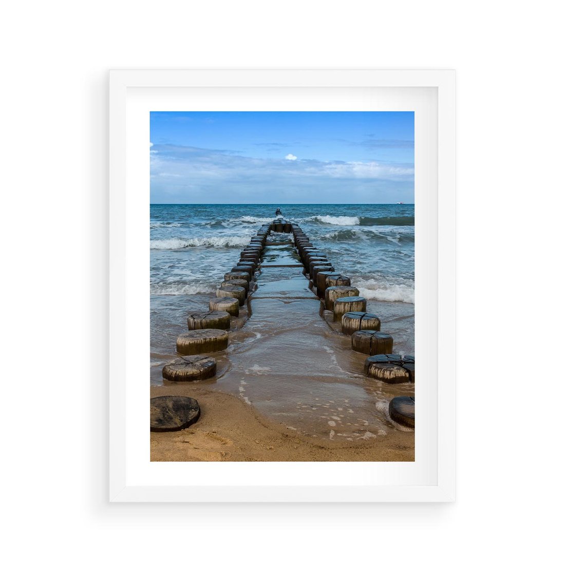Plakat w ramie 40x50 - Falochron na brzegu morza - falochron, morze - rama biała