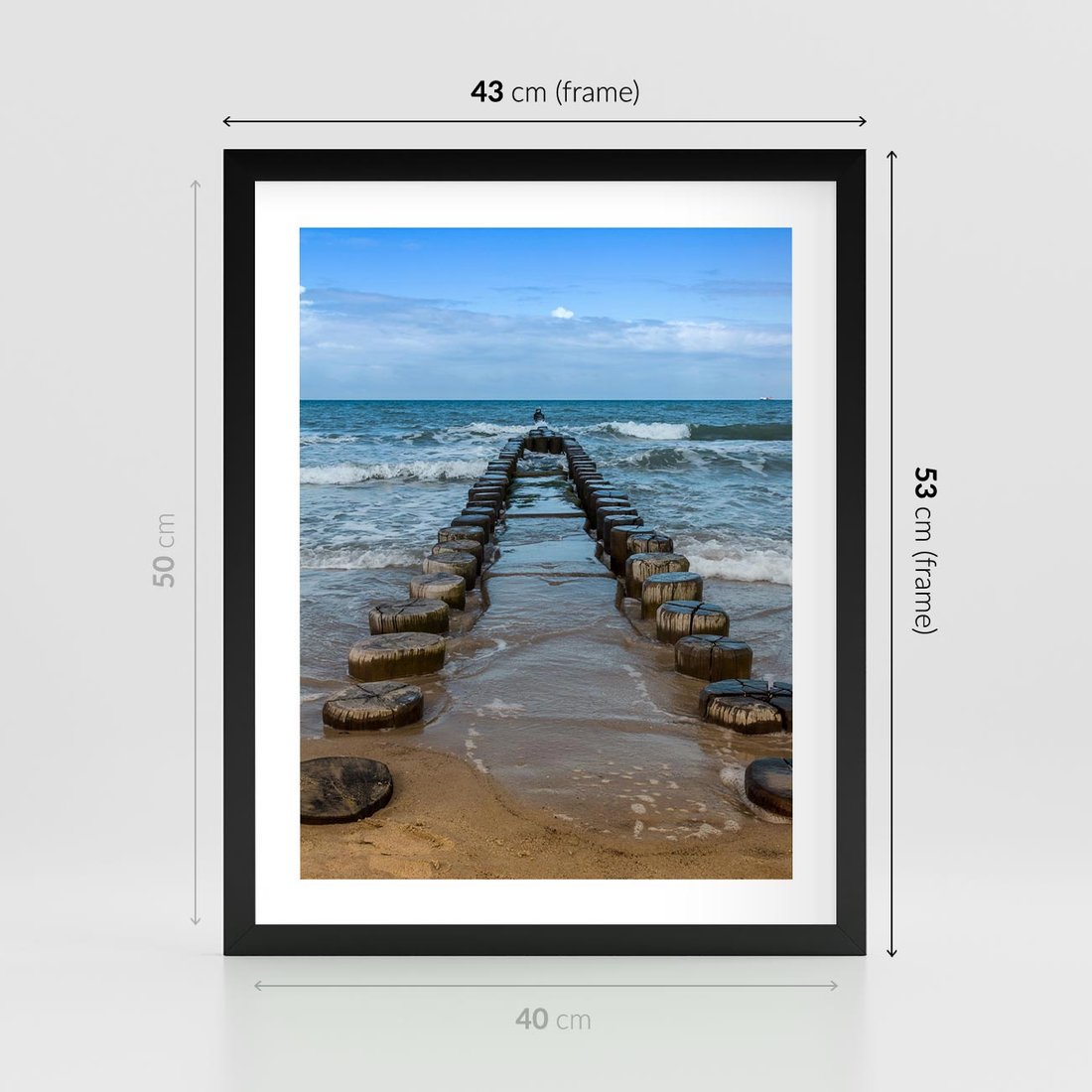 - Plakat w ramie 40x50 - Falochron na brzegu morza