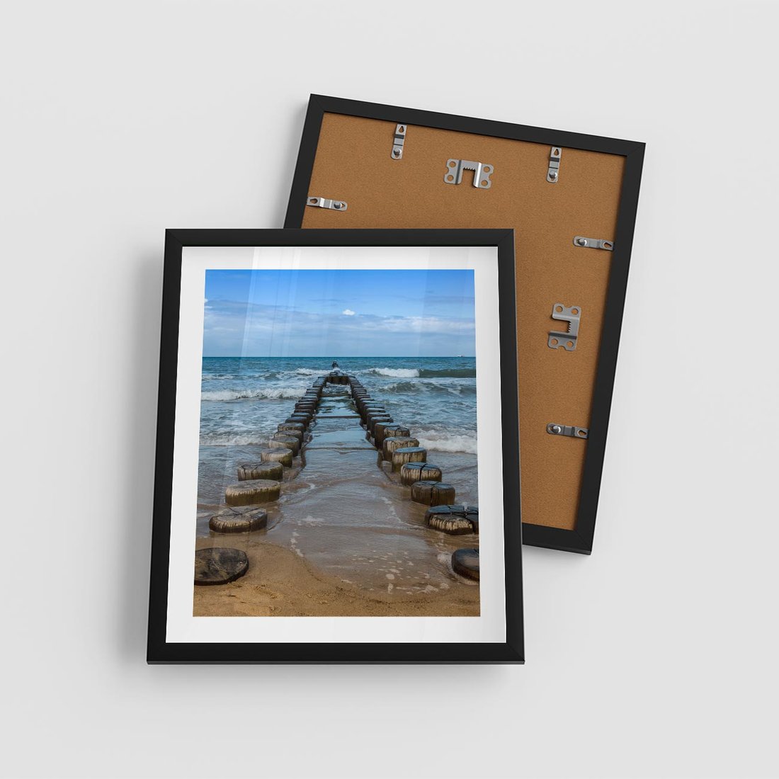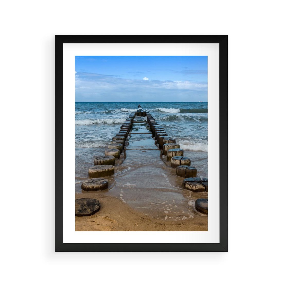 Plakat w ramie 40x50 - Falochron na brzegu morza - falochron, morze - rama czarna
