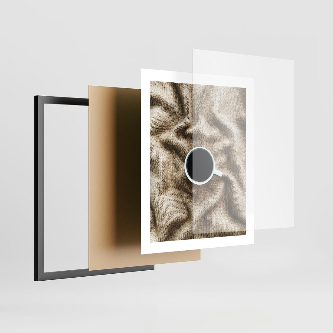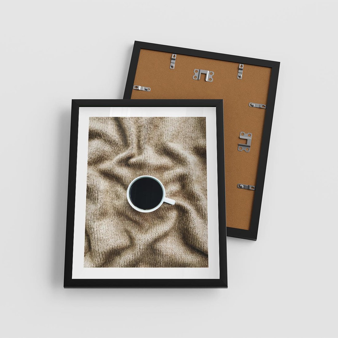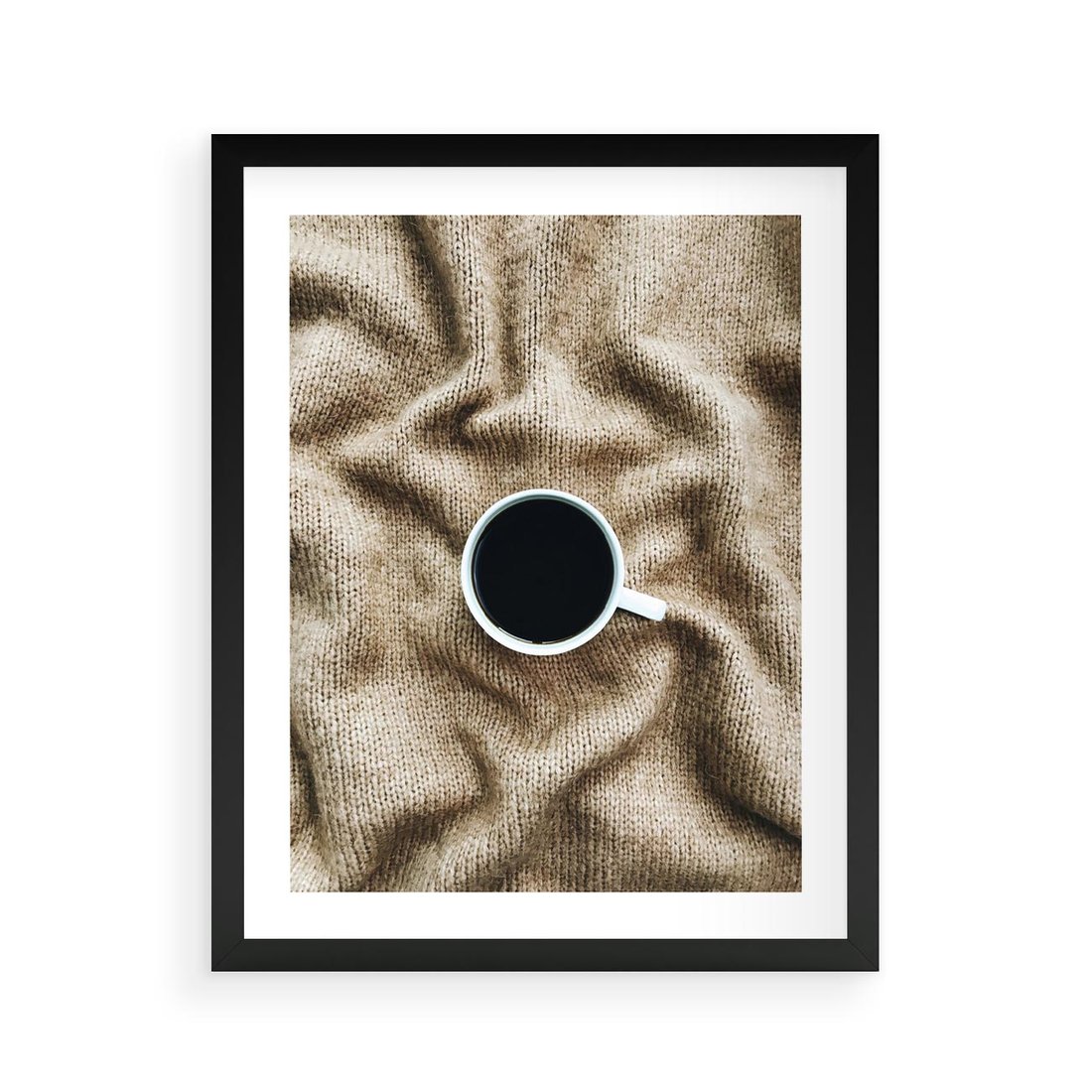Plakat w ramie 40x50 - Filiżanka Kawy na Brązowym Kocu - kawa, czarna kawa - rama czarna