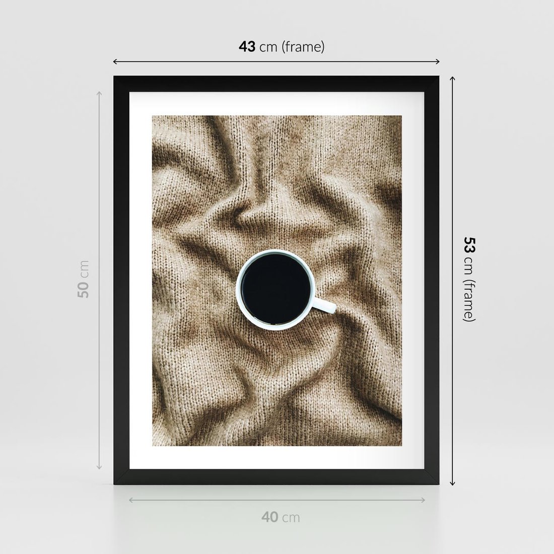 - Plakat w ramie 40x50 - Filiżanka Kawy na Brązowym Kocu