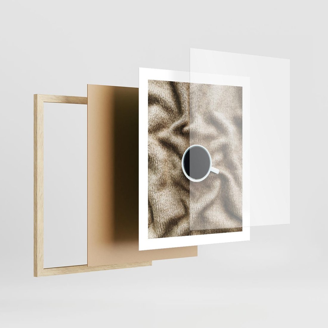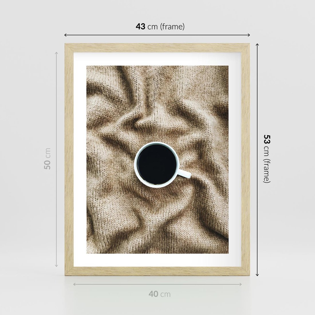 - Plakat w ramie 40x50 - Filiżanka Kawy na Brązowym Kocu