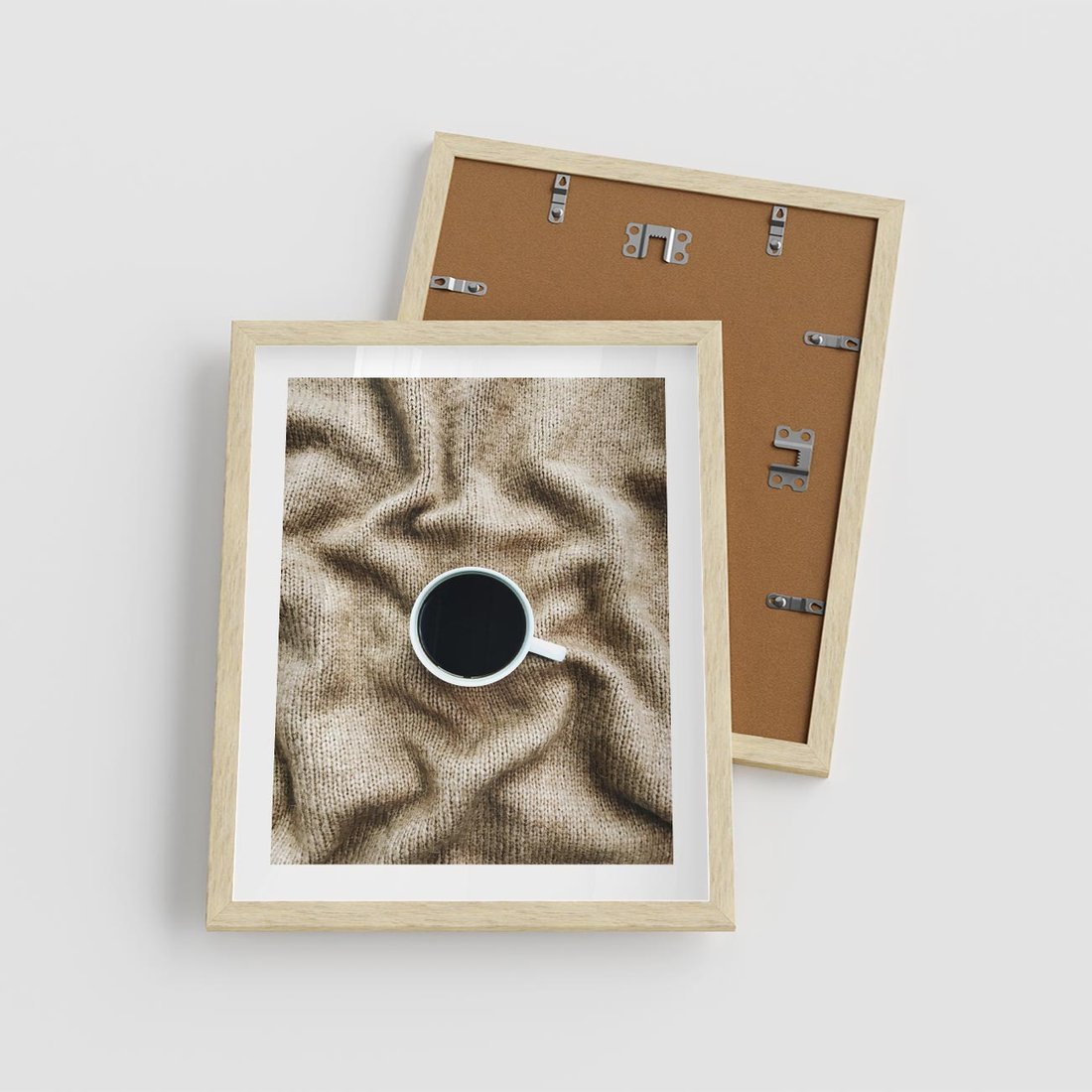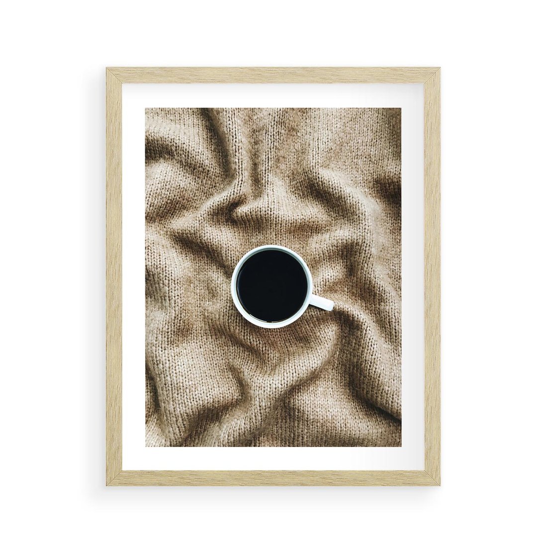 Plakat w ramie 40x50 - Filiżanka Kawy na Brązowym Kocu - kawa, czarna kawa - rama drewno