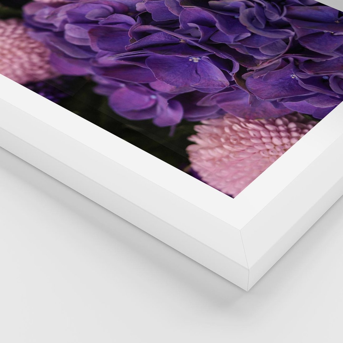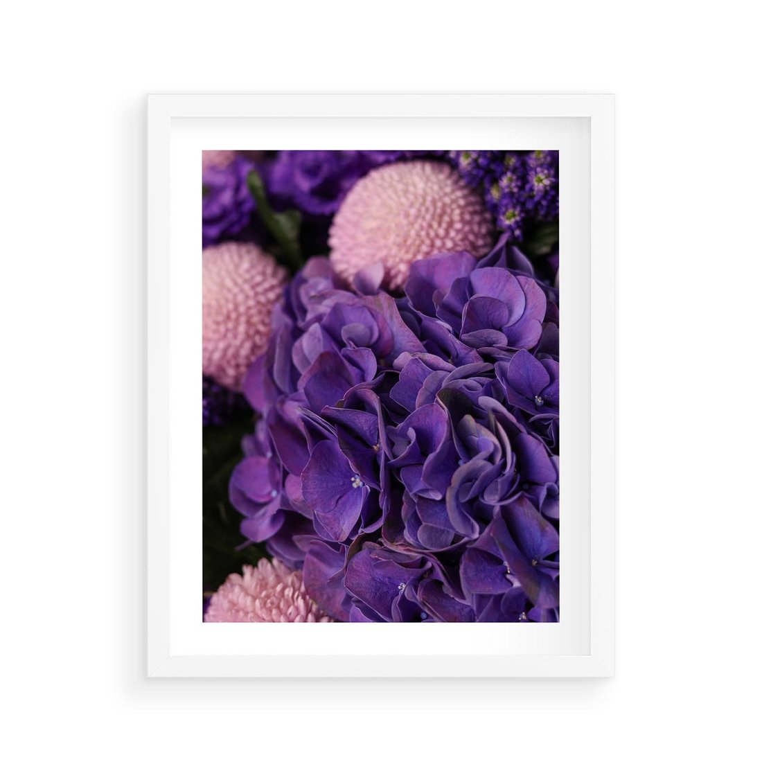 Plakat w ramie 40x50 - Fioletowa hortensja - kwiaty, hortensja - rama biała