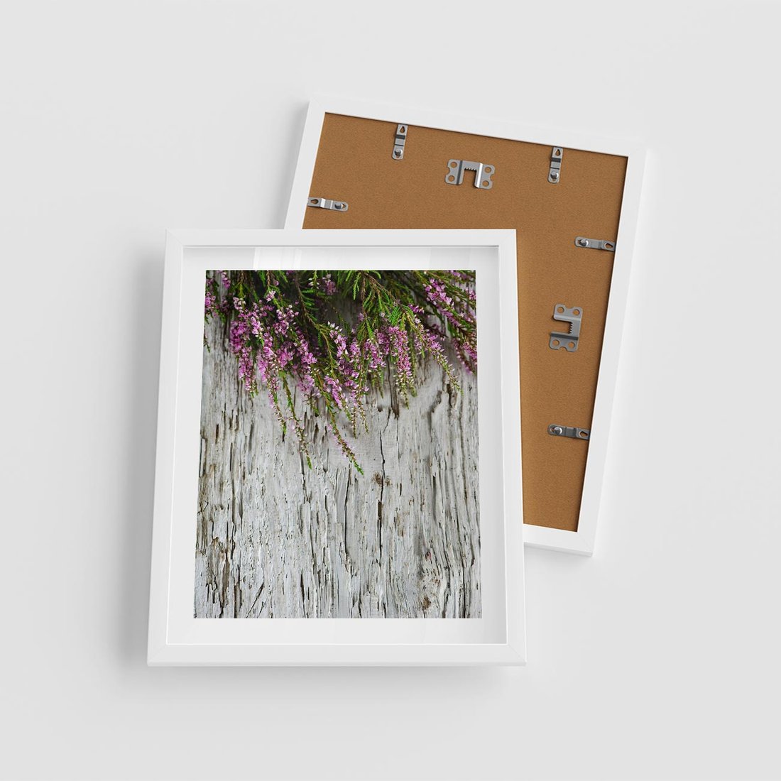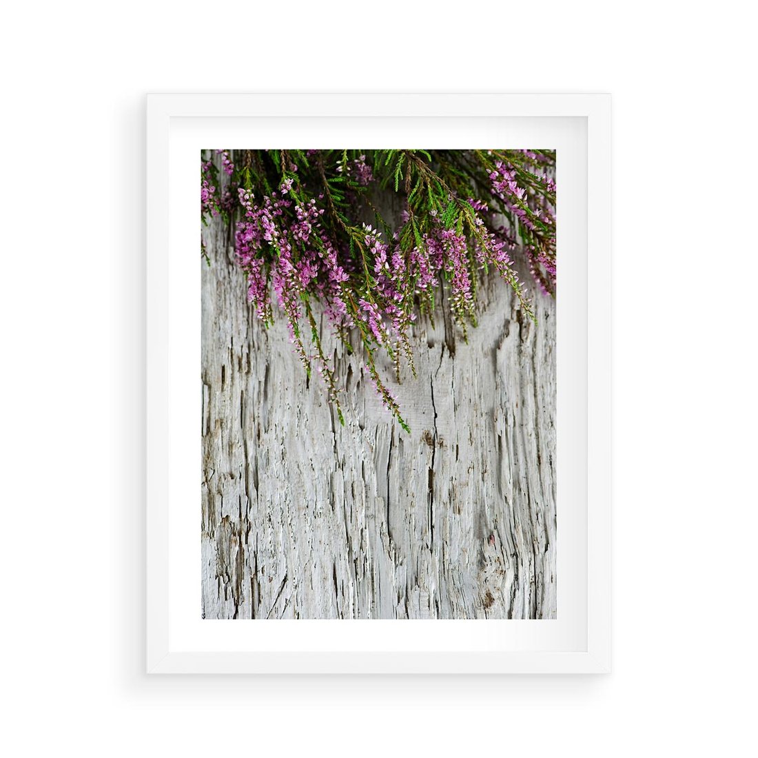 Plakat w ramie 40x50 - Fioletowe Wrzosy - wrzosy, fiolet - rama biała