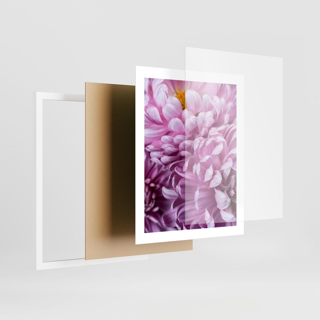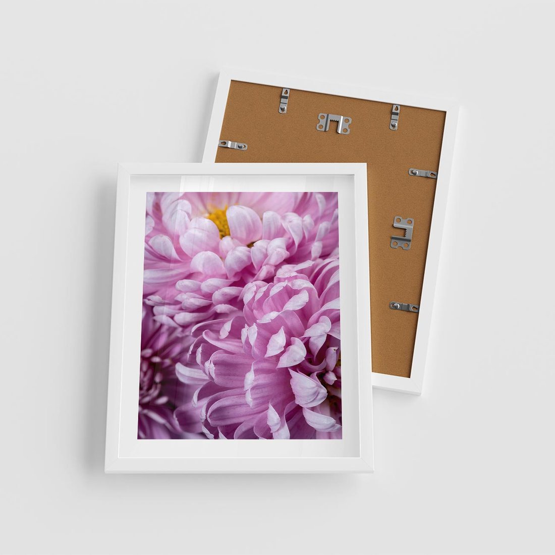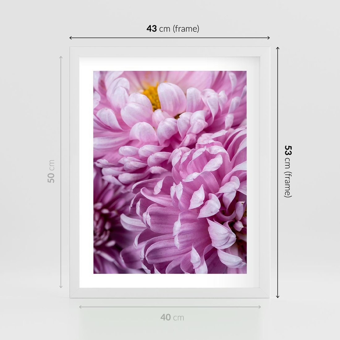 Plakat w ramie 40x50 - Fioletowy zawrót głowy - kwiat, różowy kwiat - rama biała