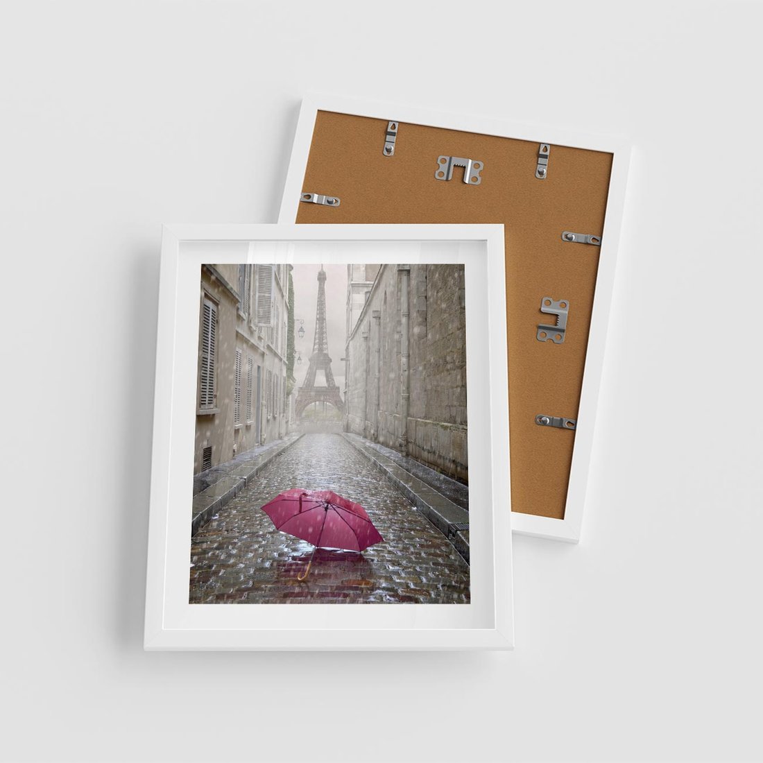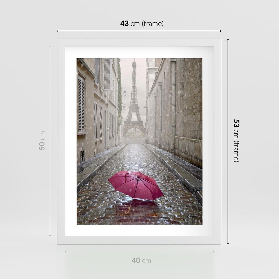 Plakat w ramie 40x50 - Francuska elegancja pod parasolem - Francja, parasol - rama biała