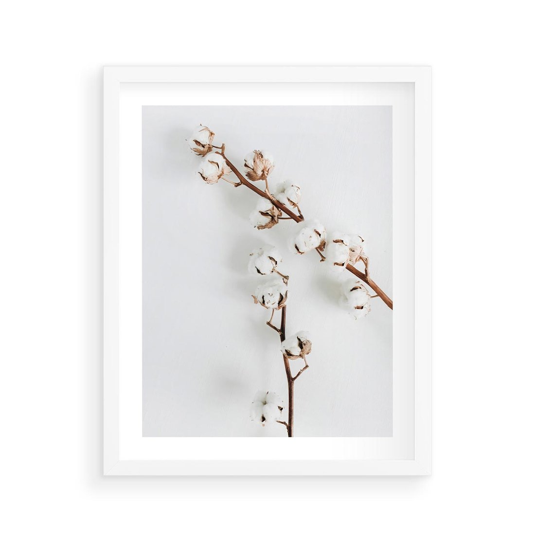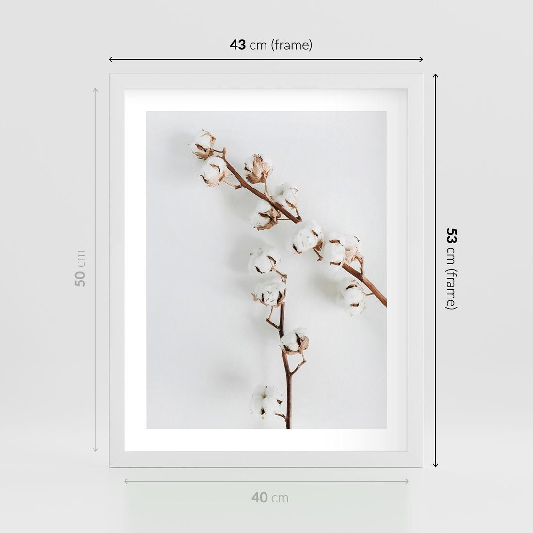 - Plakat w ramie 40x50 - Gałęzie Bawełny na Białym Tle