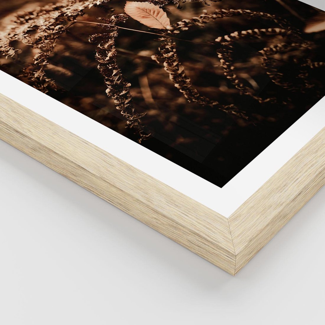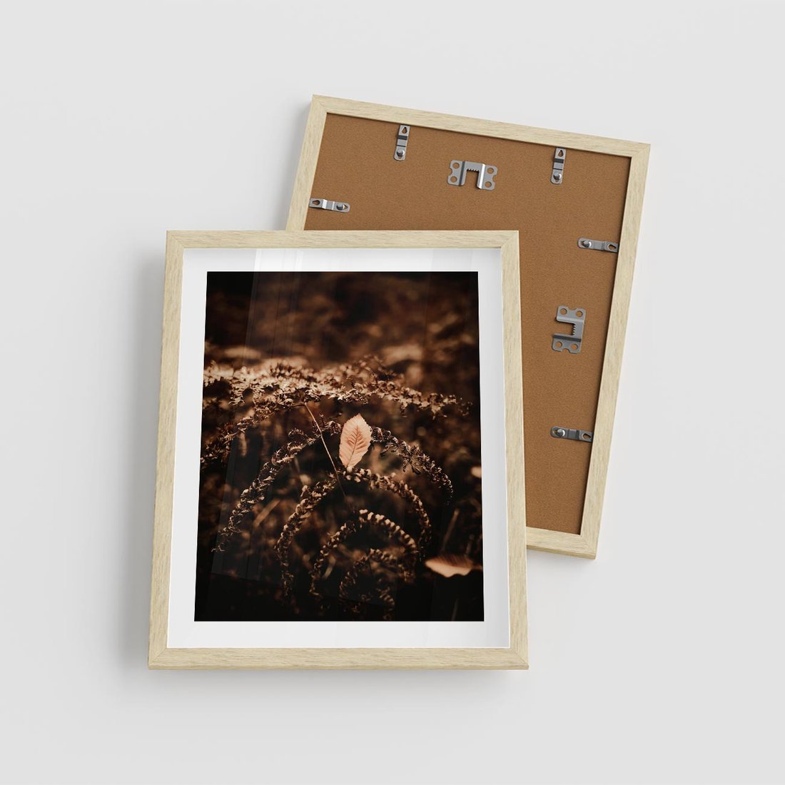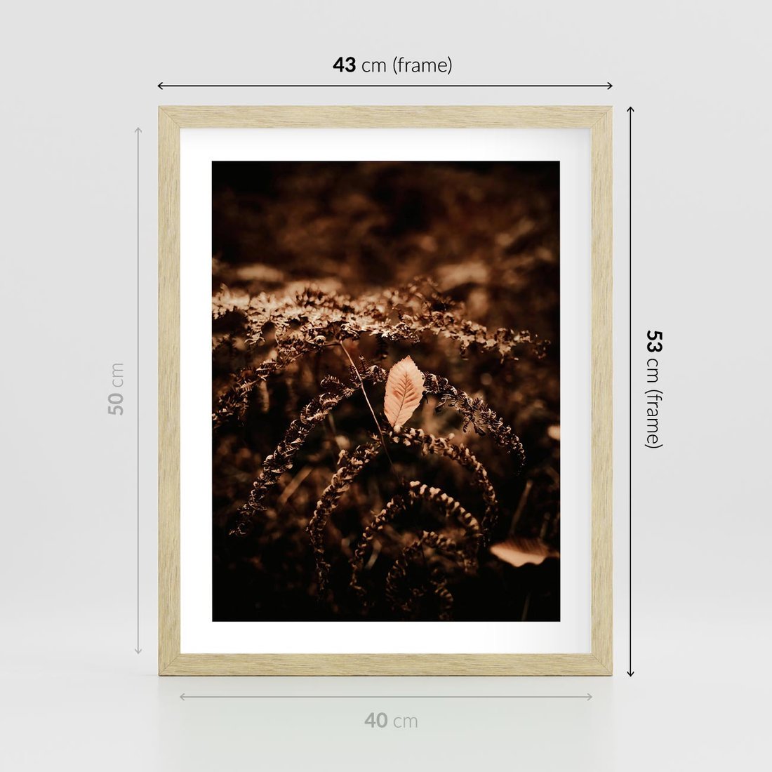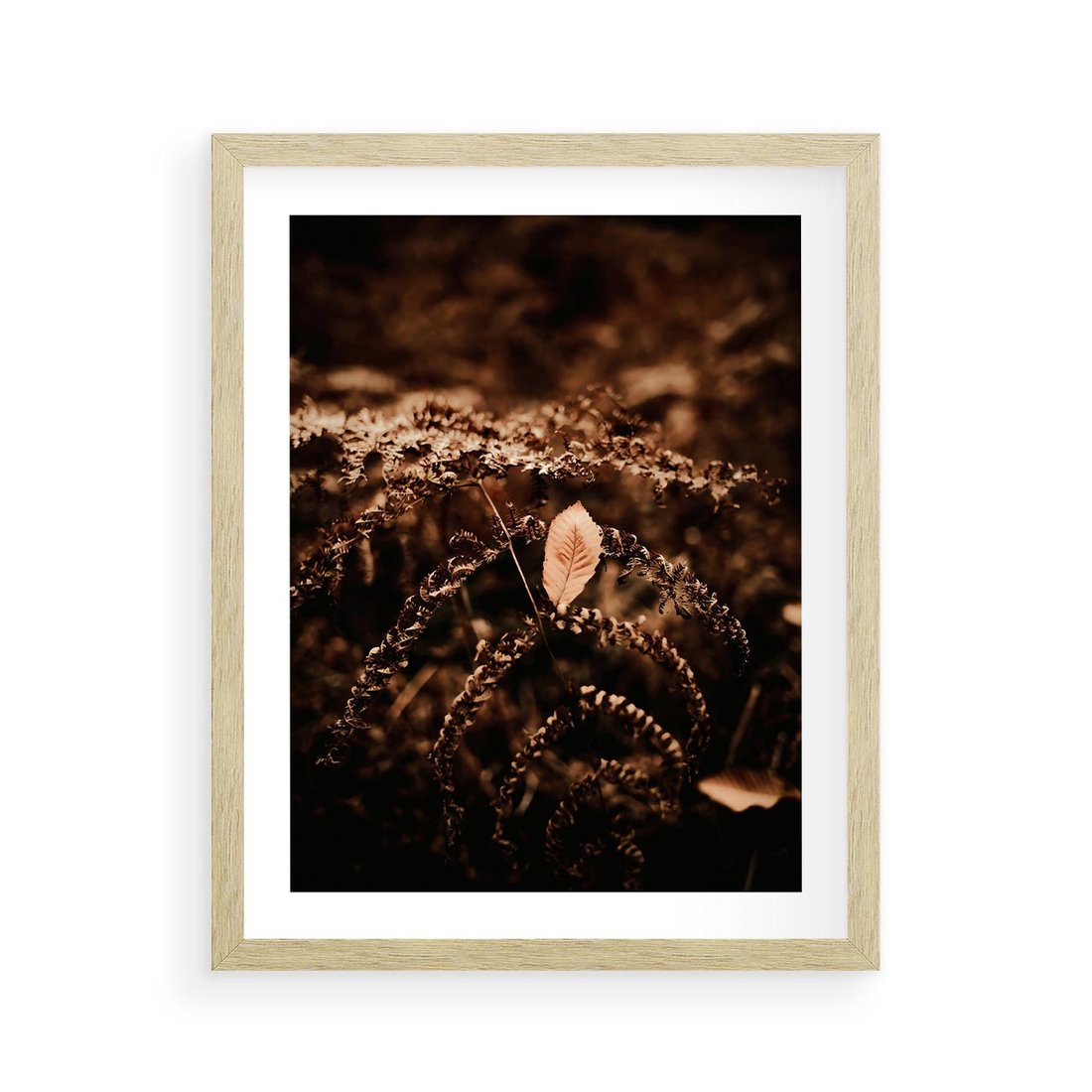 Plakat w ramie 40x50 - Gałęzie i Liść w Brązowej Tonacji - suche gałęzie, liść - rama drewno