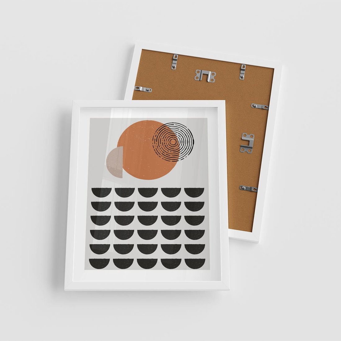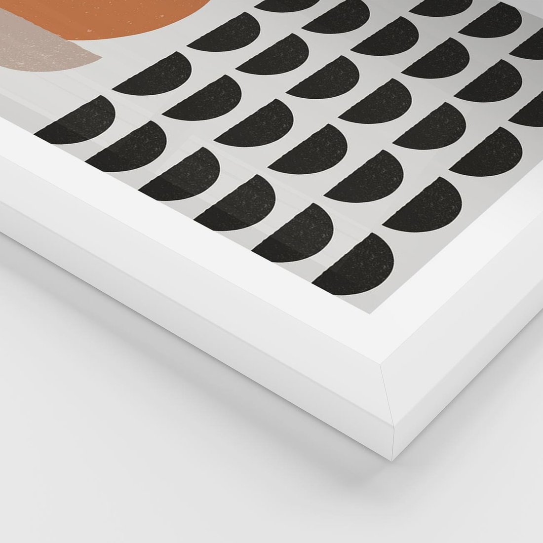 Plakat w ramie 40x50 - Geometryczna Ekspresja - geometryczny graficzny obraz, pomarańczowe koło - rama biała