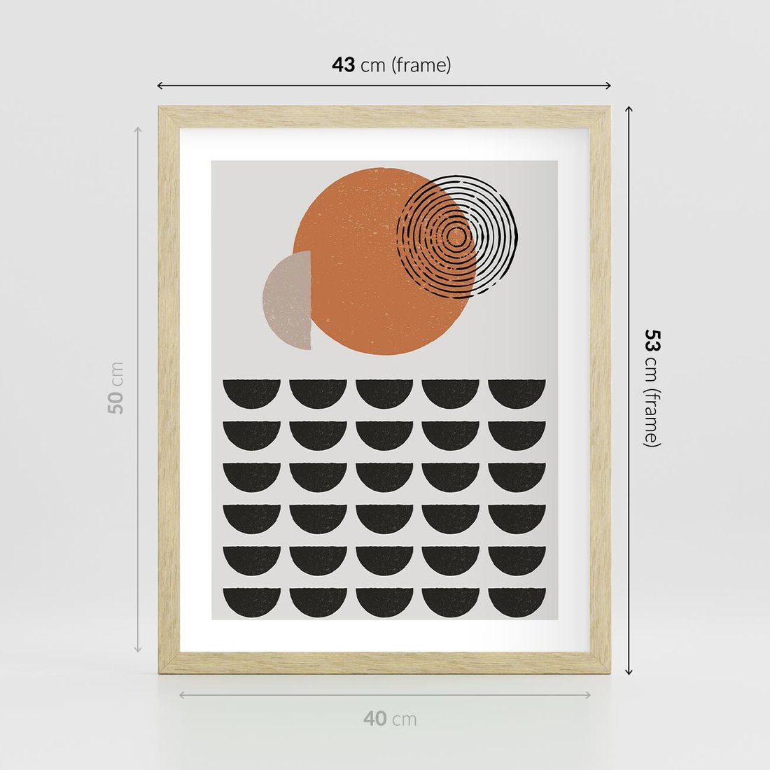 Plakat w ramie 40x50 - Geometryczna Ekspresja - geometryczny graficzny obraz, pomarańczowe koło - rama drewno