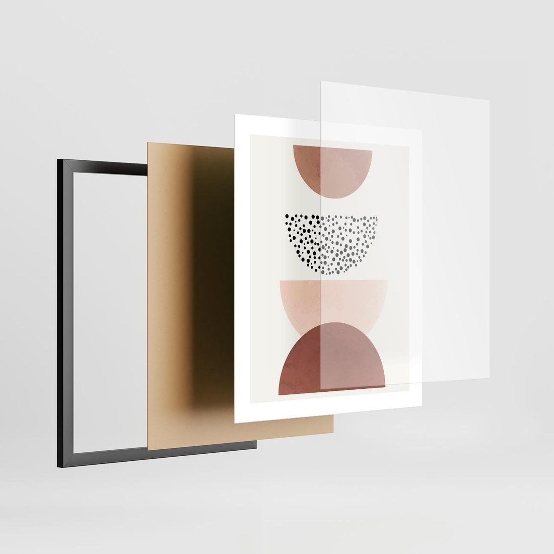 Plakat w ramie 40x50 - Geometryczna Harmonia w Brązach i Beżach - geometryczne kształty, brązy i beże - rama czarna