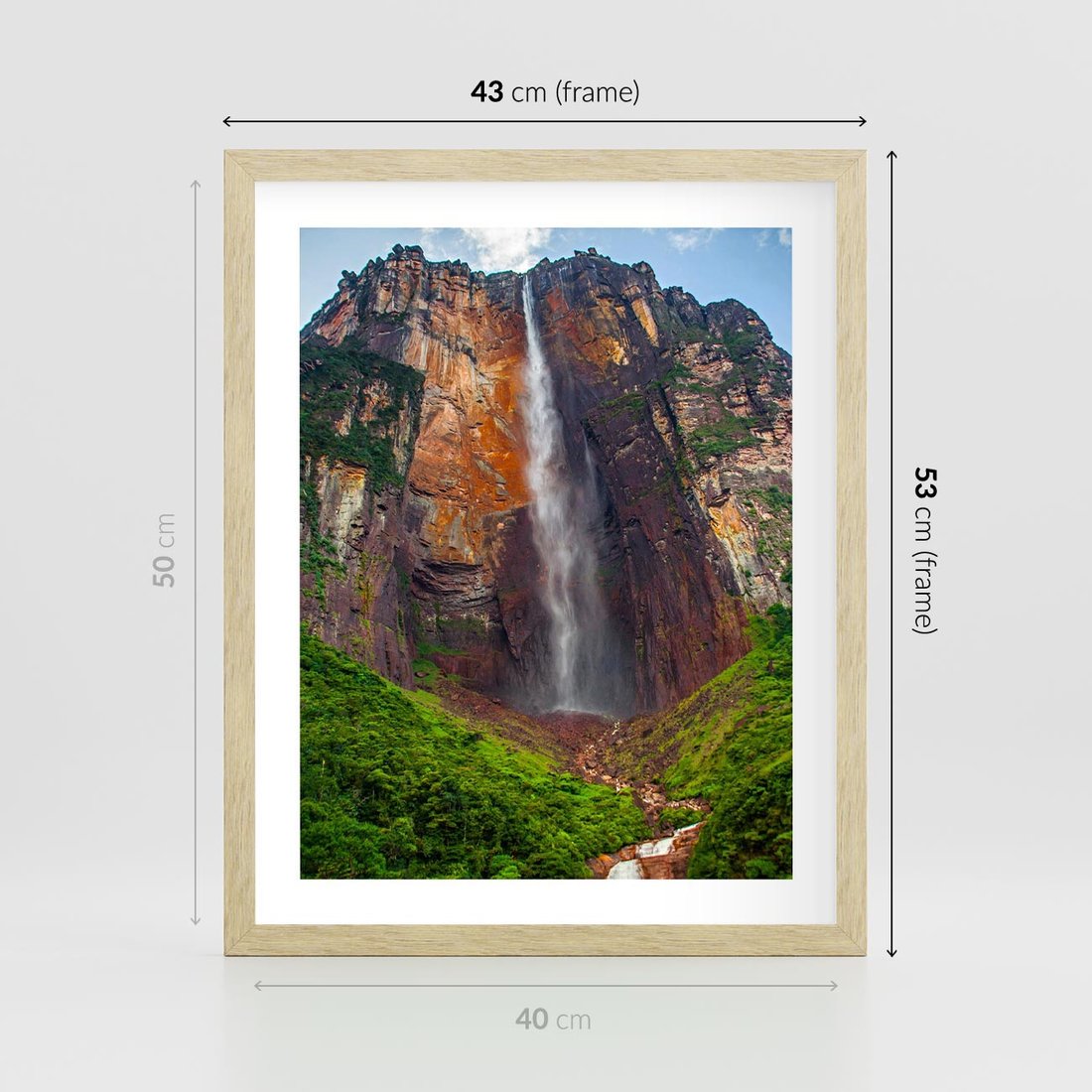 Plakat w ramie 40x50 - Górska siła wodospadów - wodospad, góra - rama drewno
