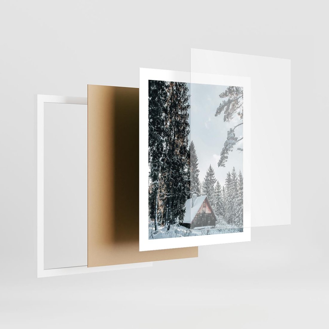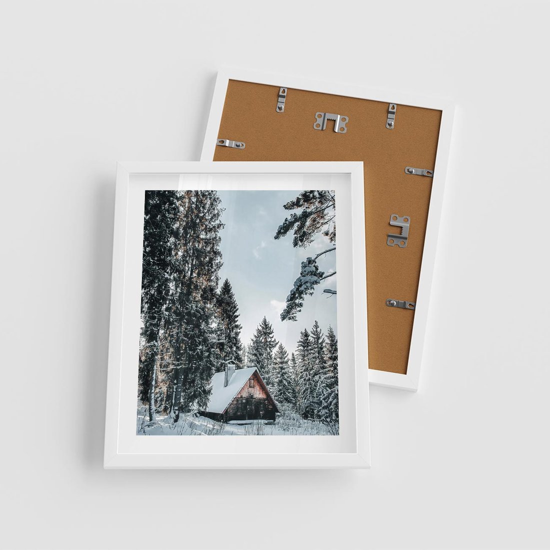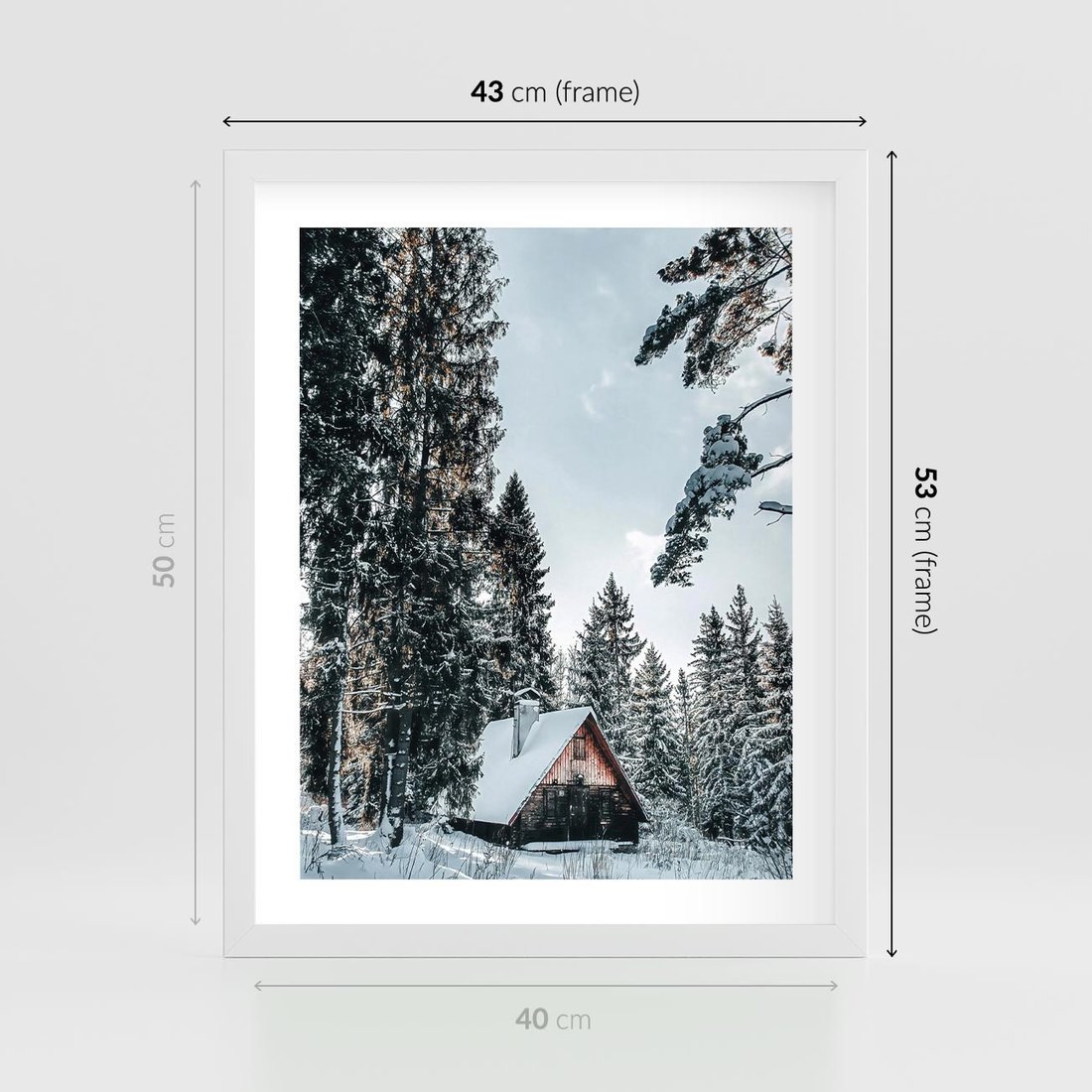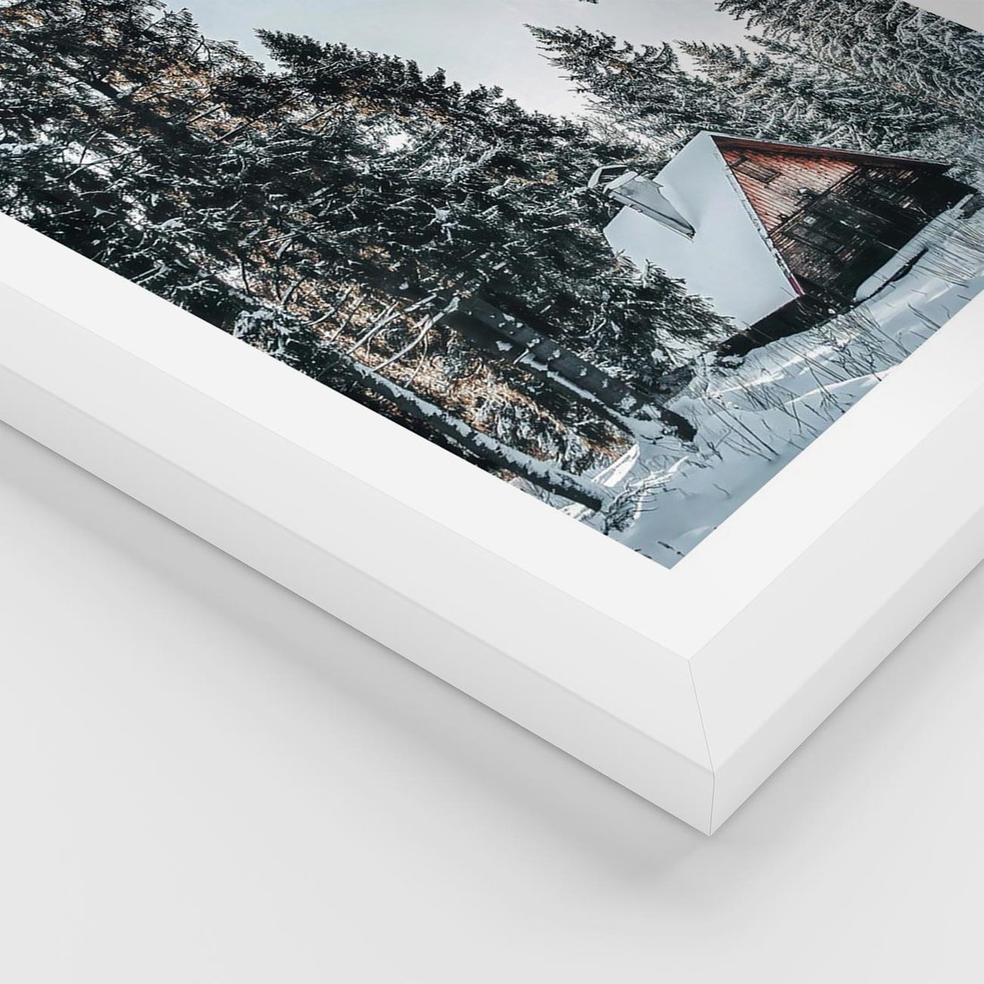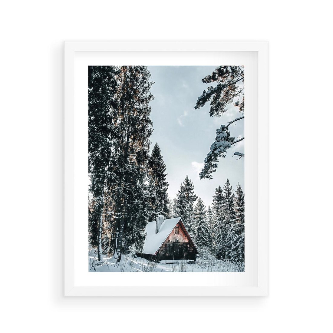 Plakat w ramie 40x50 - Górska Uroda Zimą: Dom w Śniegu - domek w górach, zima - rama biała