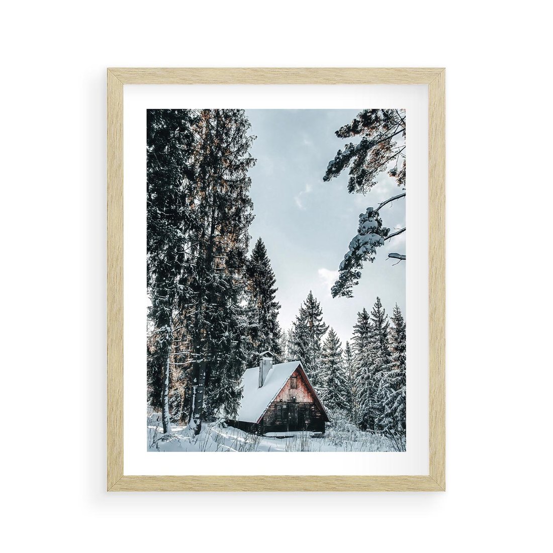 - Plakat w ramie 40x50 - Górska Uroda Zimą: Dom w Śniegu