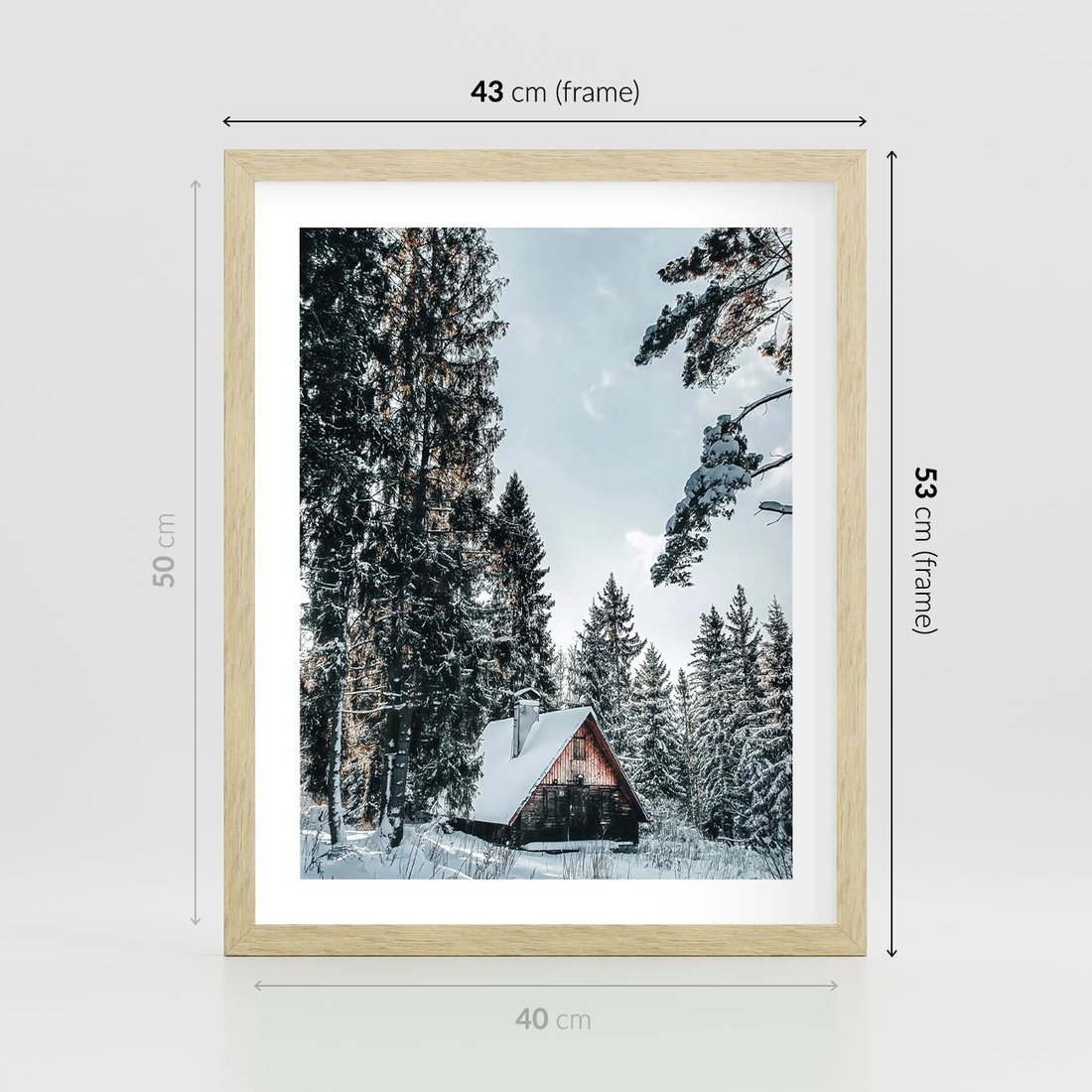 Plakat w ramie 40x50 - Górska Uroda Zimą: Dom w Śniegu - domek w górach, zima - rama drewno