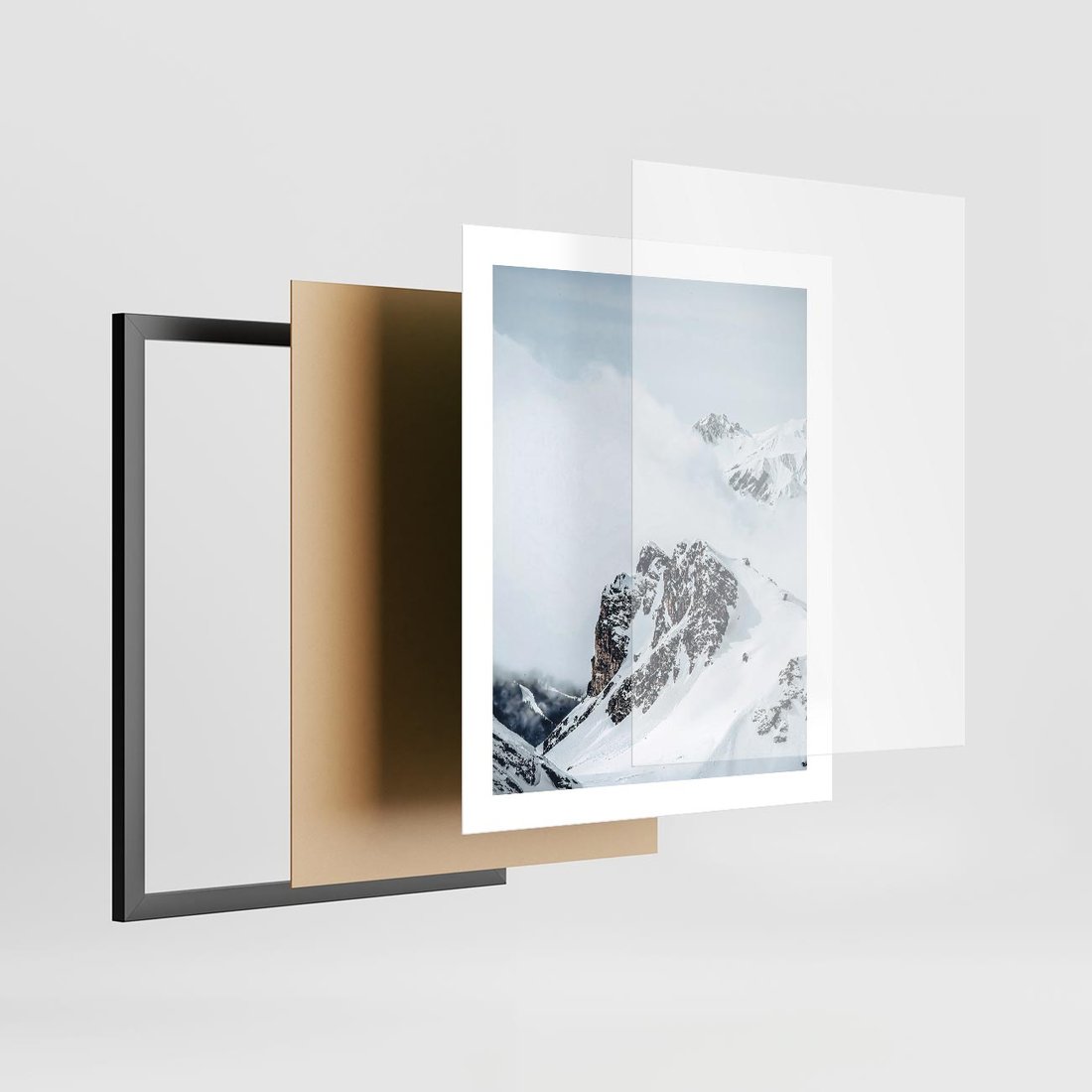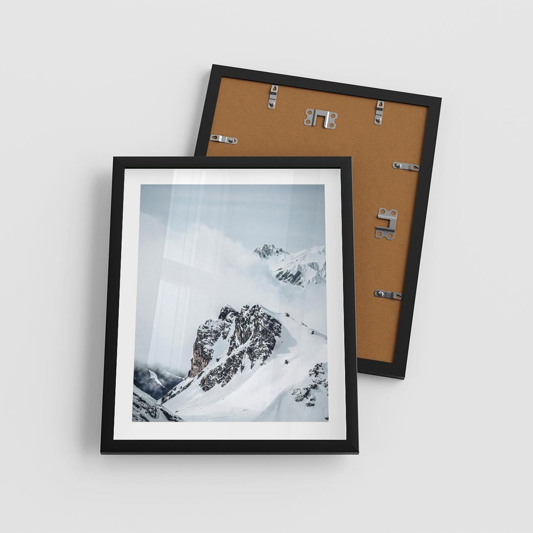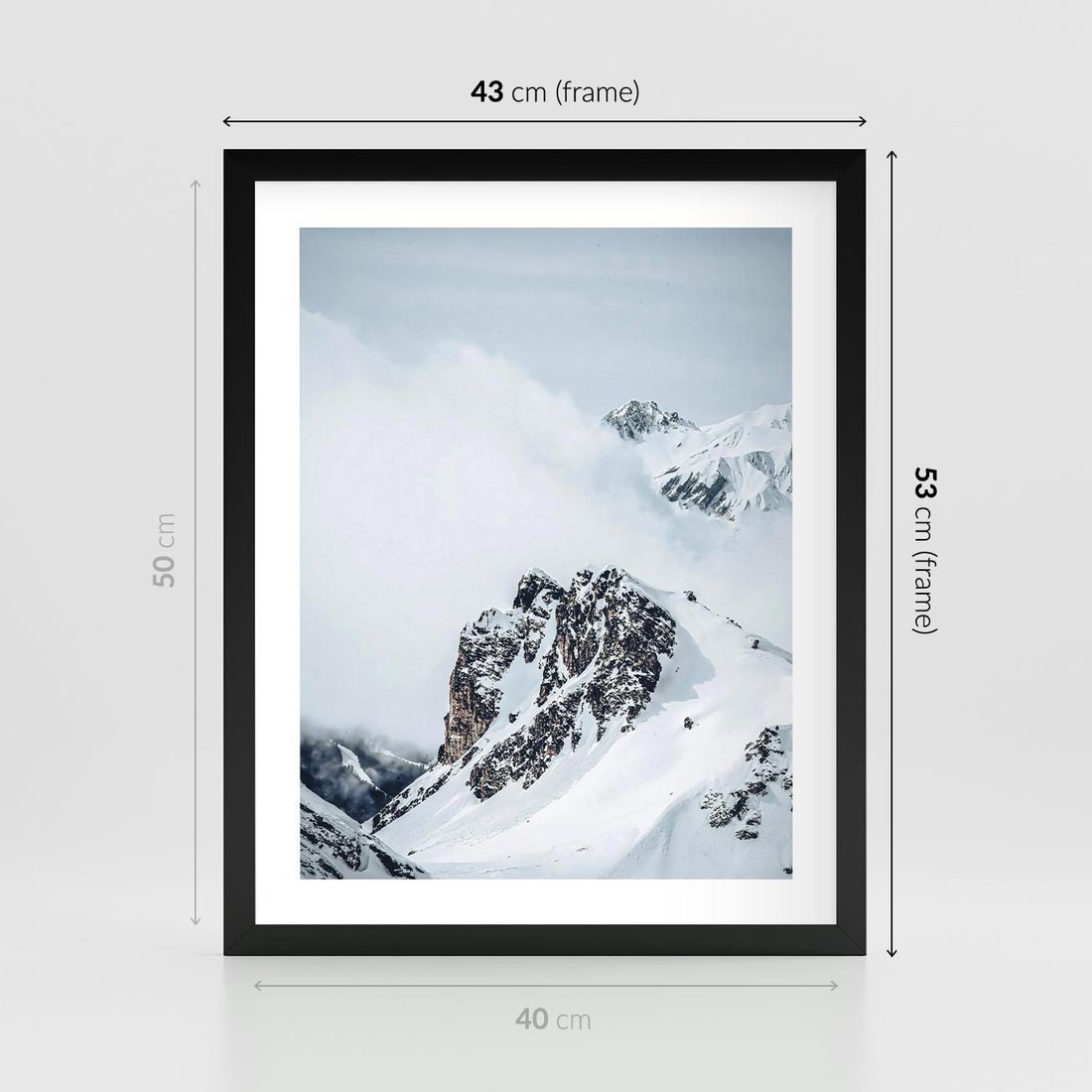 Plakat w ramie 40x50 - Górski Majestat - górskie szczyty pod śniegiem, górski krajobraz - rama czarna
