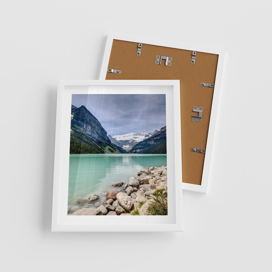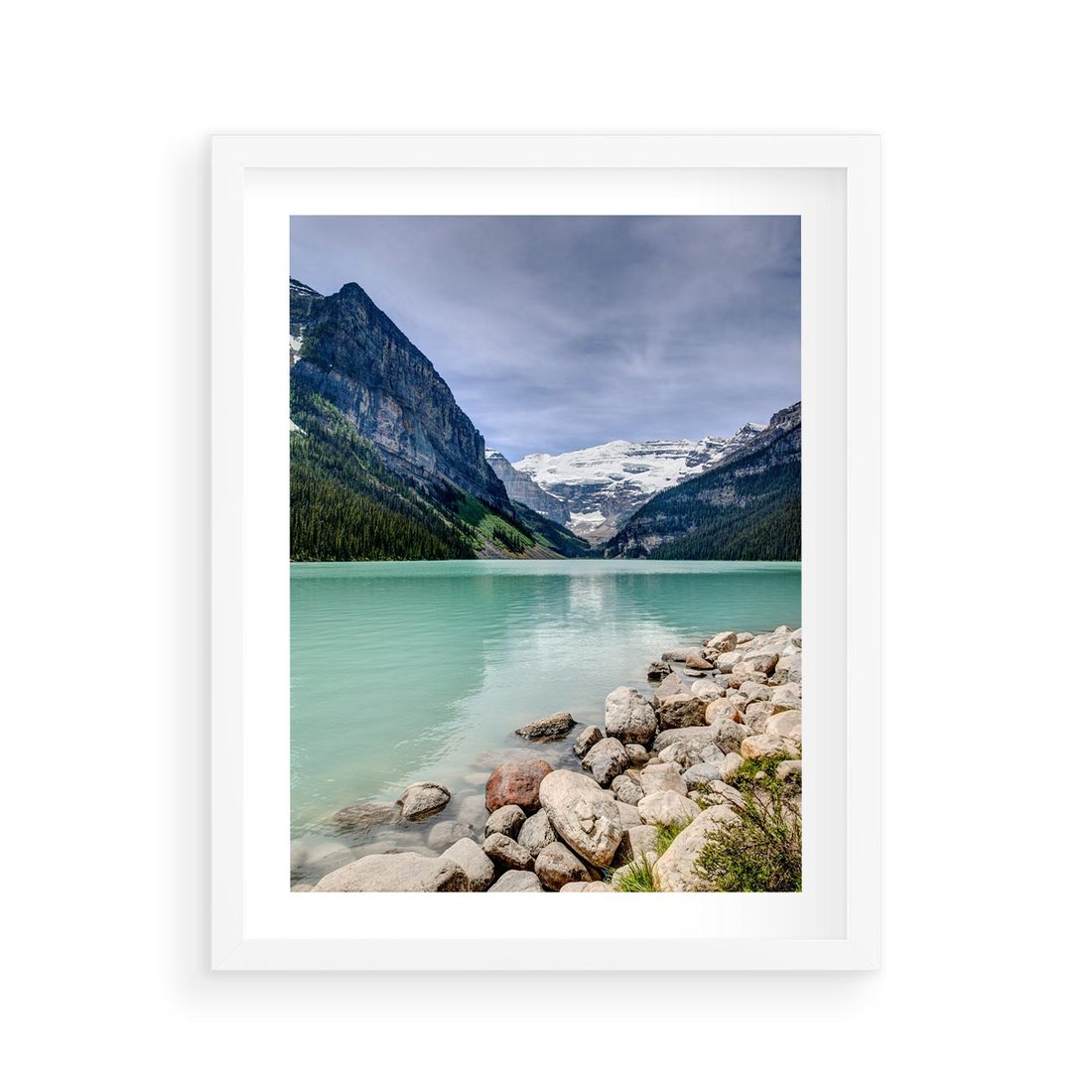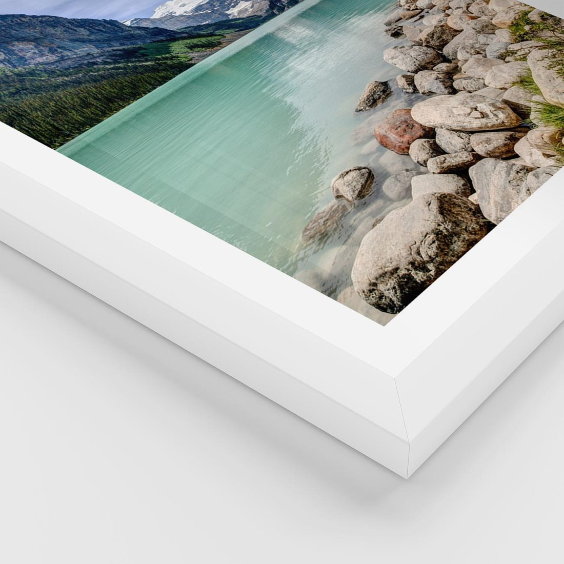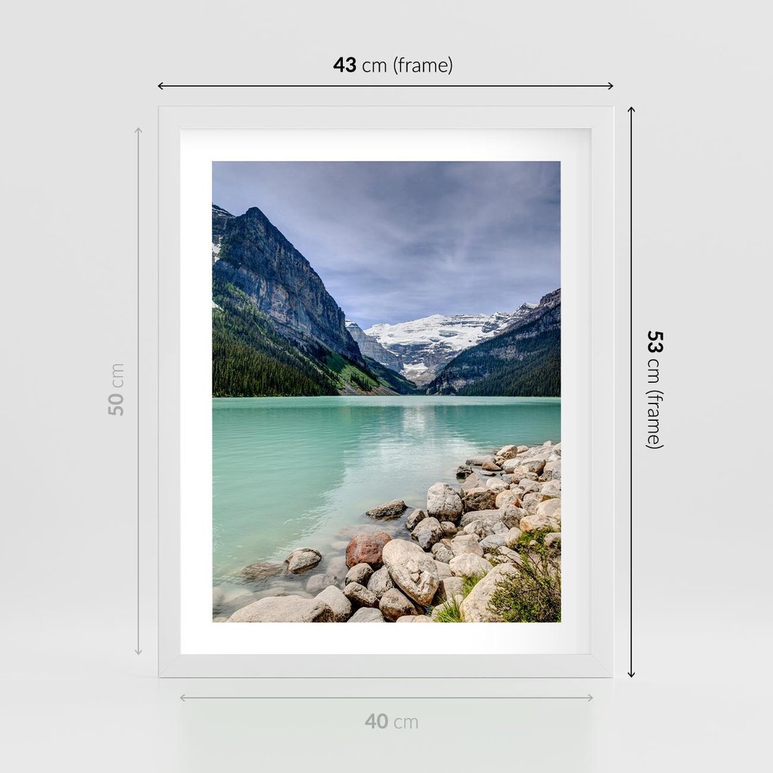 Plakat w ramie 40x50 - Górskie jezioro - spokój i piękno - jezioro, górskie - rama biała