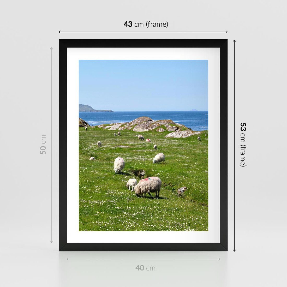 Plakat w ramie 40x50 - Górskie Owce - góry, owce - rama czarna