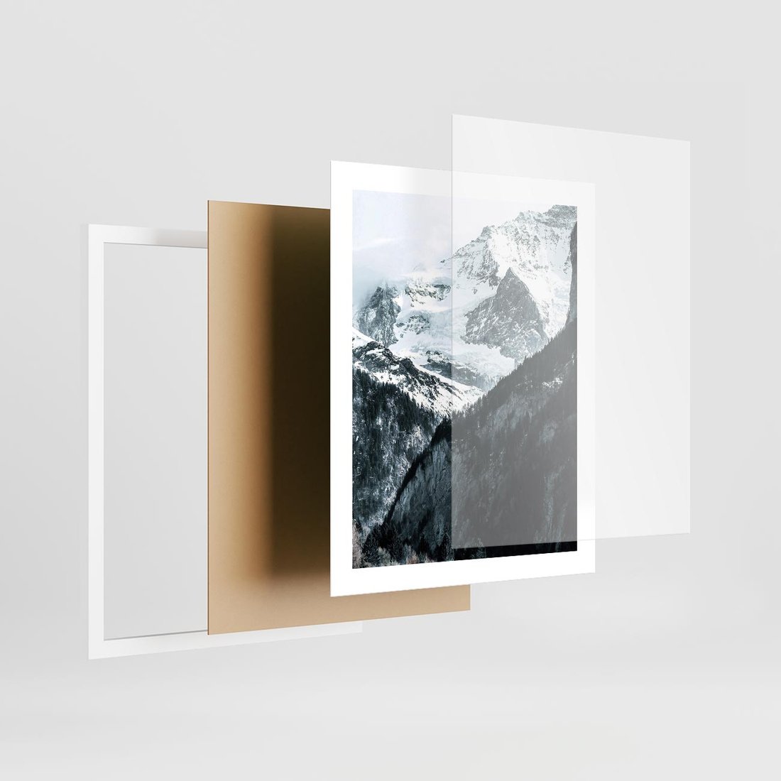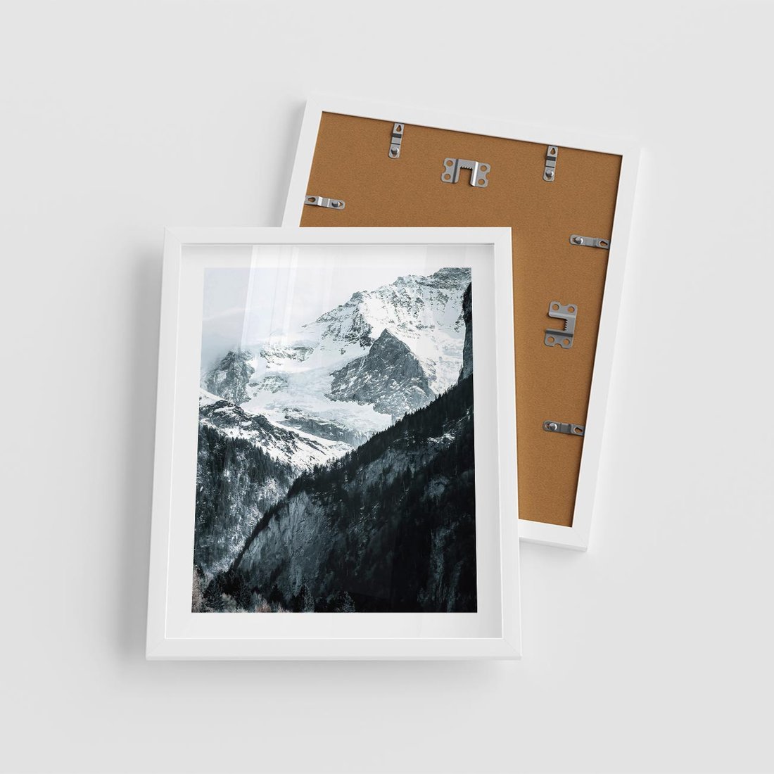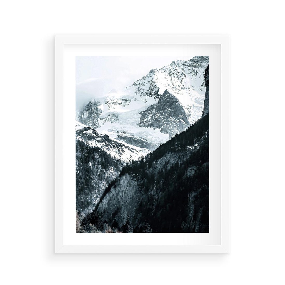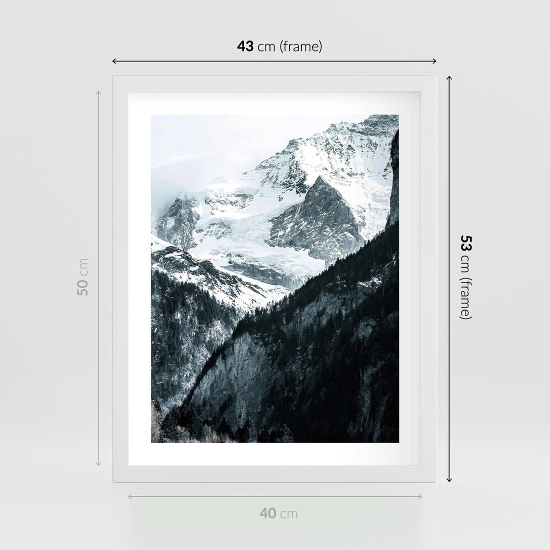 Plakat w ramie 40x50 - Góry w Zimowym Uścisku - góry, ośnieżone szczyty - rama biała