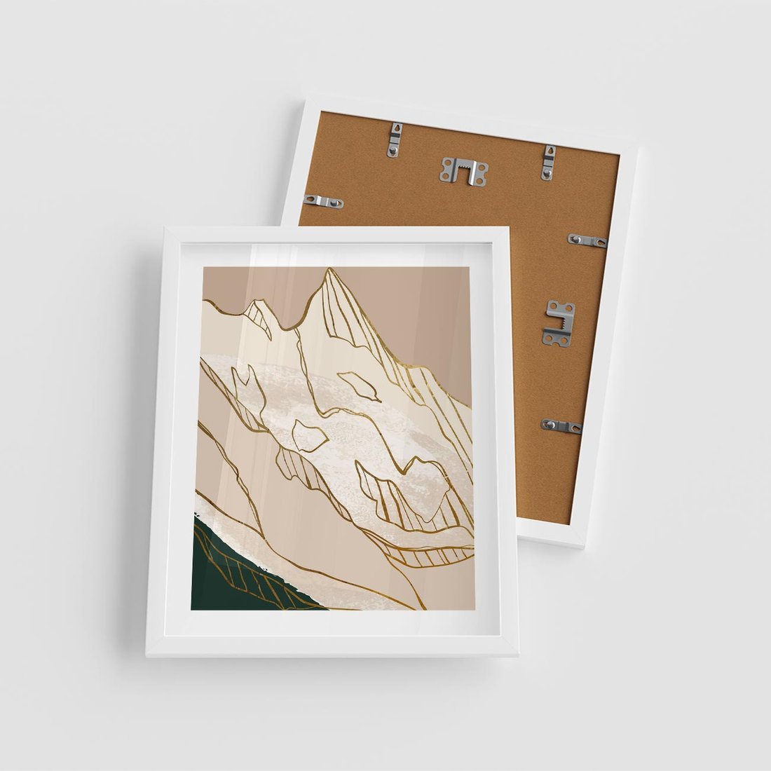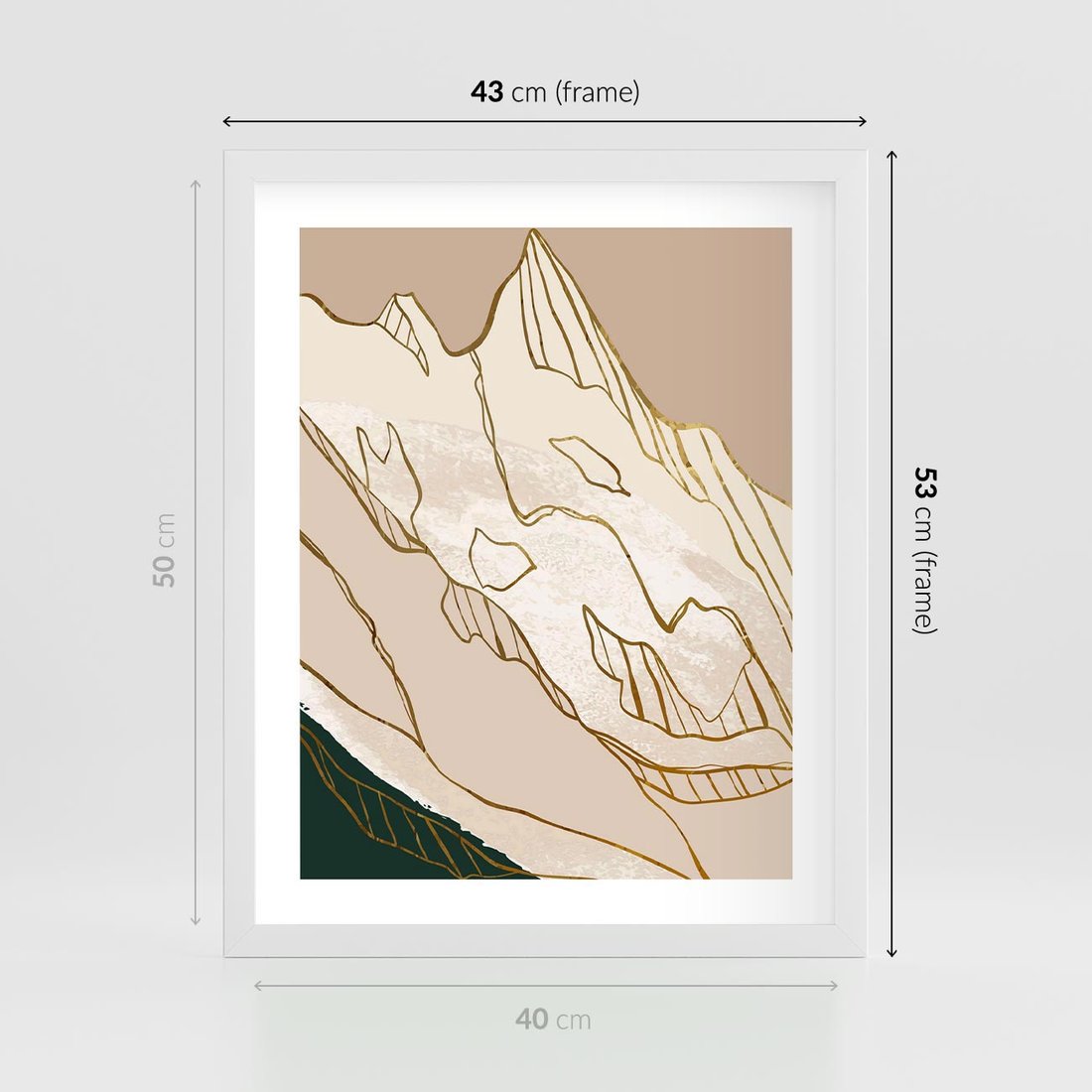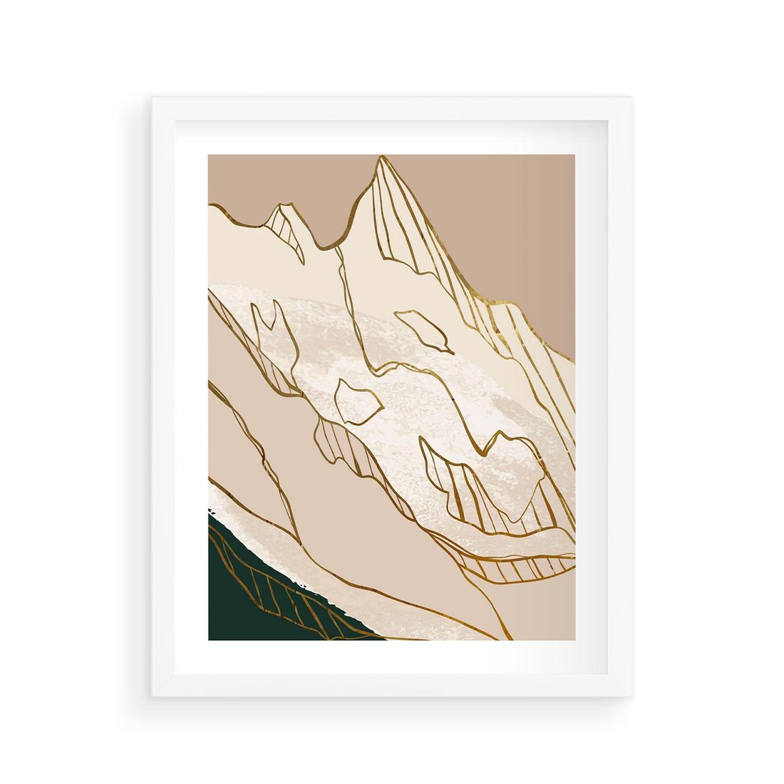 Plakat w ramie 40x50 - Góry w Złocie i Minimalizmie - grafika, złote góry - rama biała