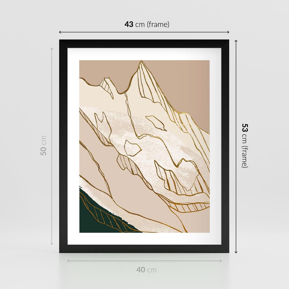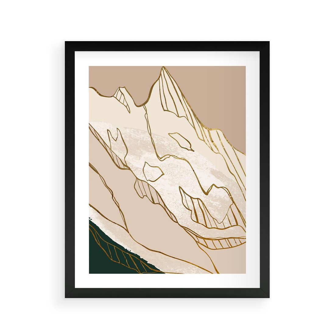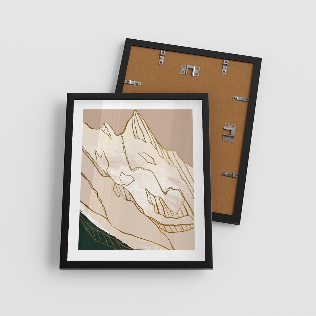 Plakat w ramie 40x50 - Góry w Złocie i Minimalizmie - grafika, złote góry - rama czarna