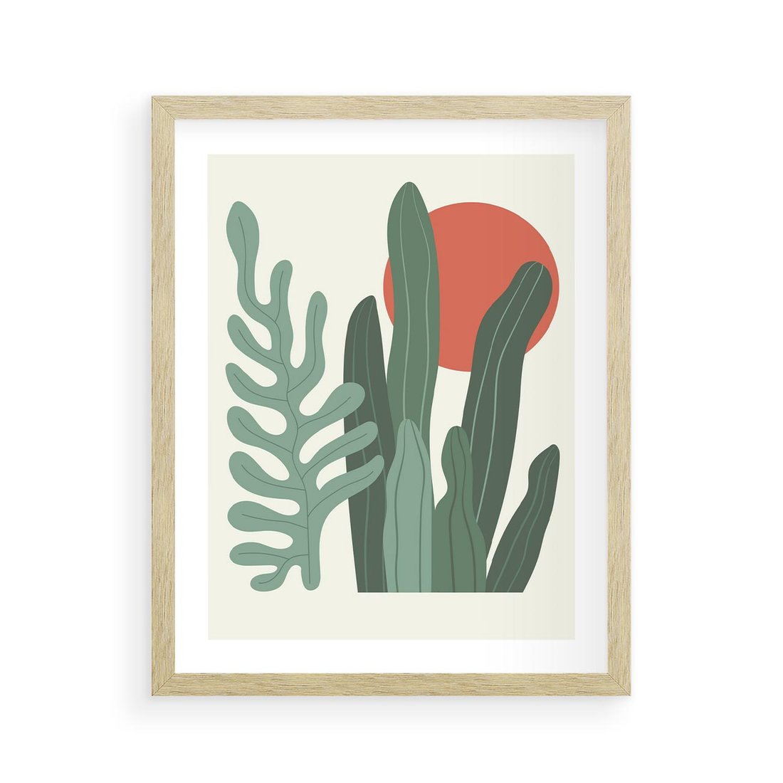 Plakat w ramie 40x50 - Graficzna Harmonia: Liście i Rośliny na Plakacie - liście, grafika - rama drewno