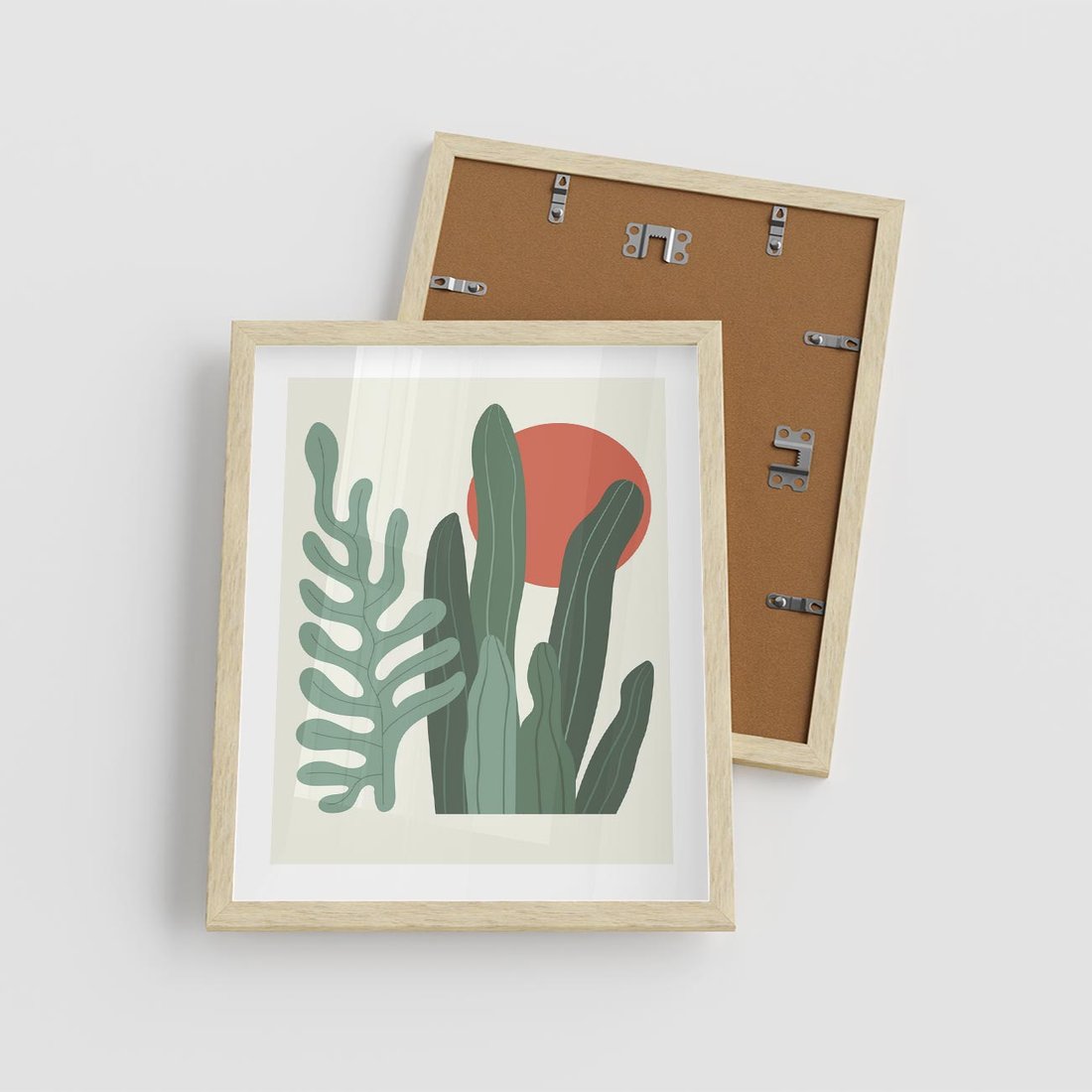 Graficzny plakat to wyjątkowy sposób na wprowadzenie natury do swojego wnętrza. Ten stylowy plakat przedstawia urocze liście i zielone rośliny w nowoczesnej, graficznej formie, dodając świeżości i elegancji każdemu pomieszczeniu.
