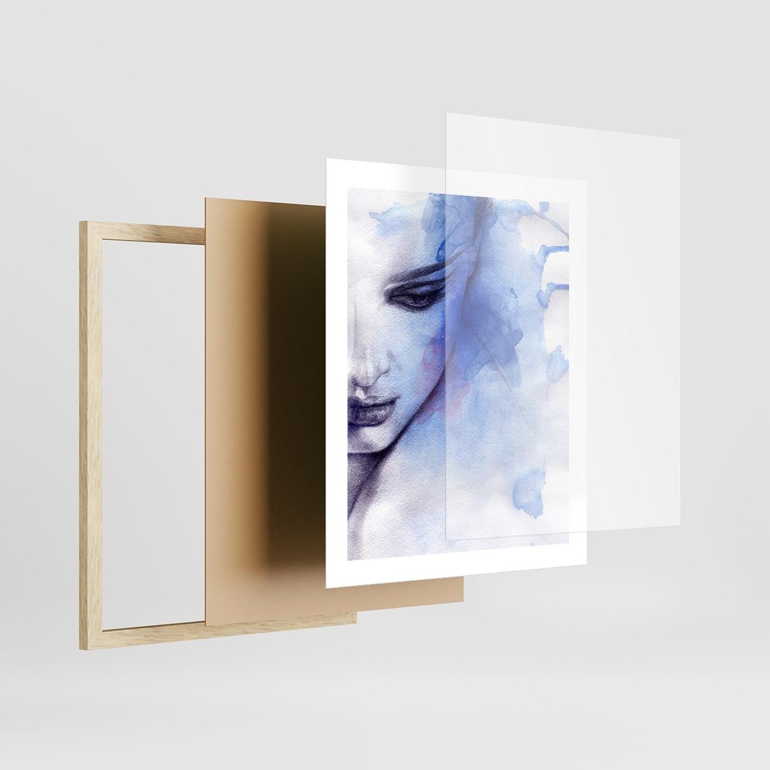 Plakat w ramie 40x50 - Graficzna magia kobiecej twarzy - grafika, kobieta - rama drewno