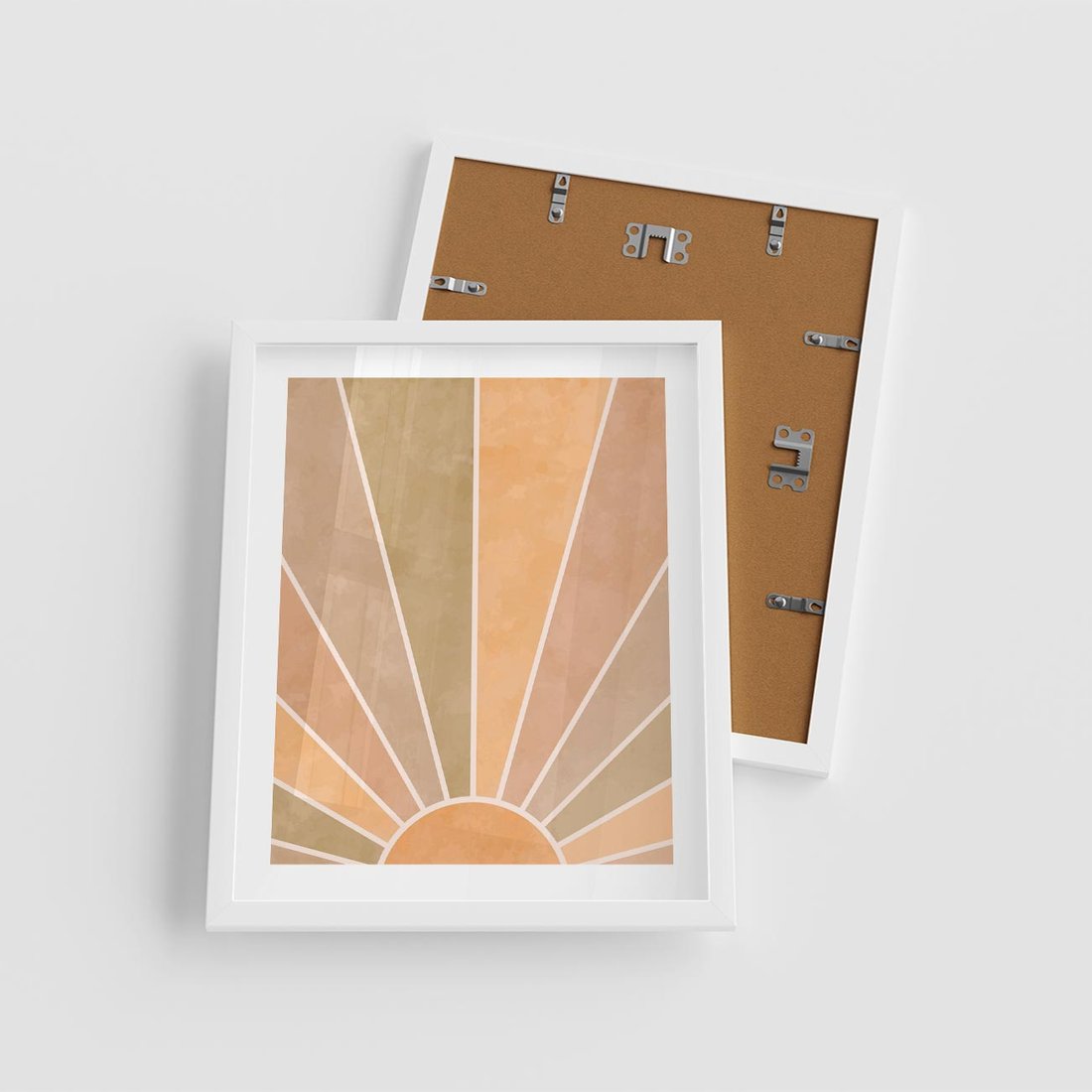 Plakat w ramie 40x50 - Grafika Boho w Odcieniach Pomarańczu - boho słońce, grafika - rama biała