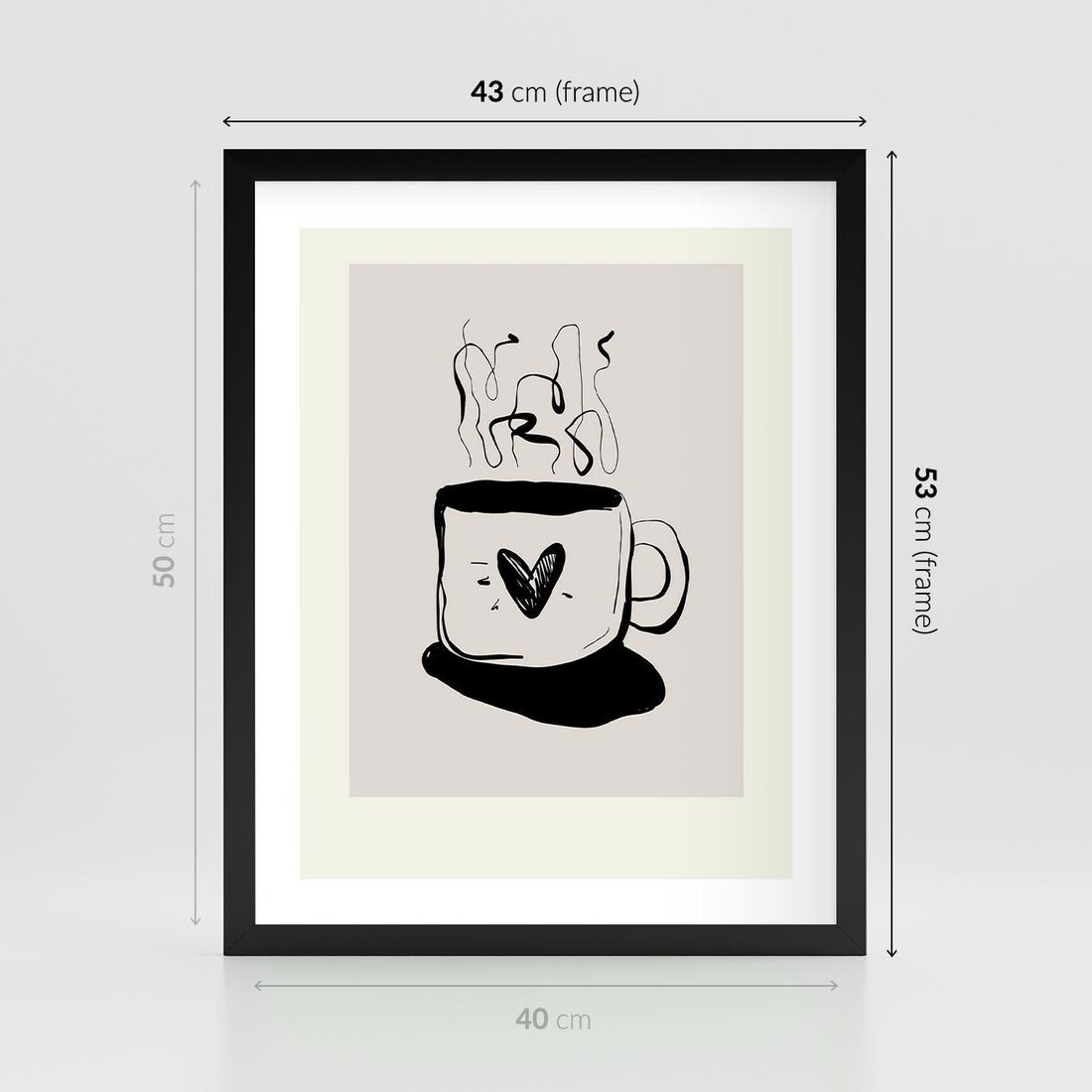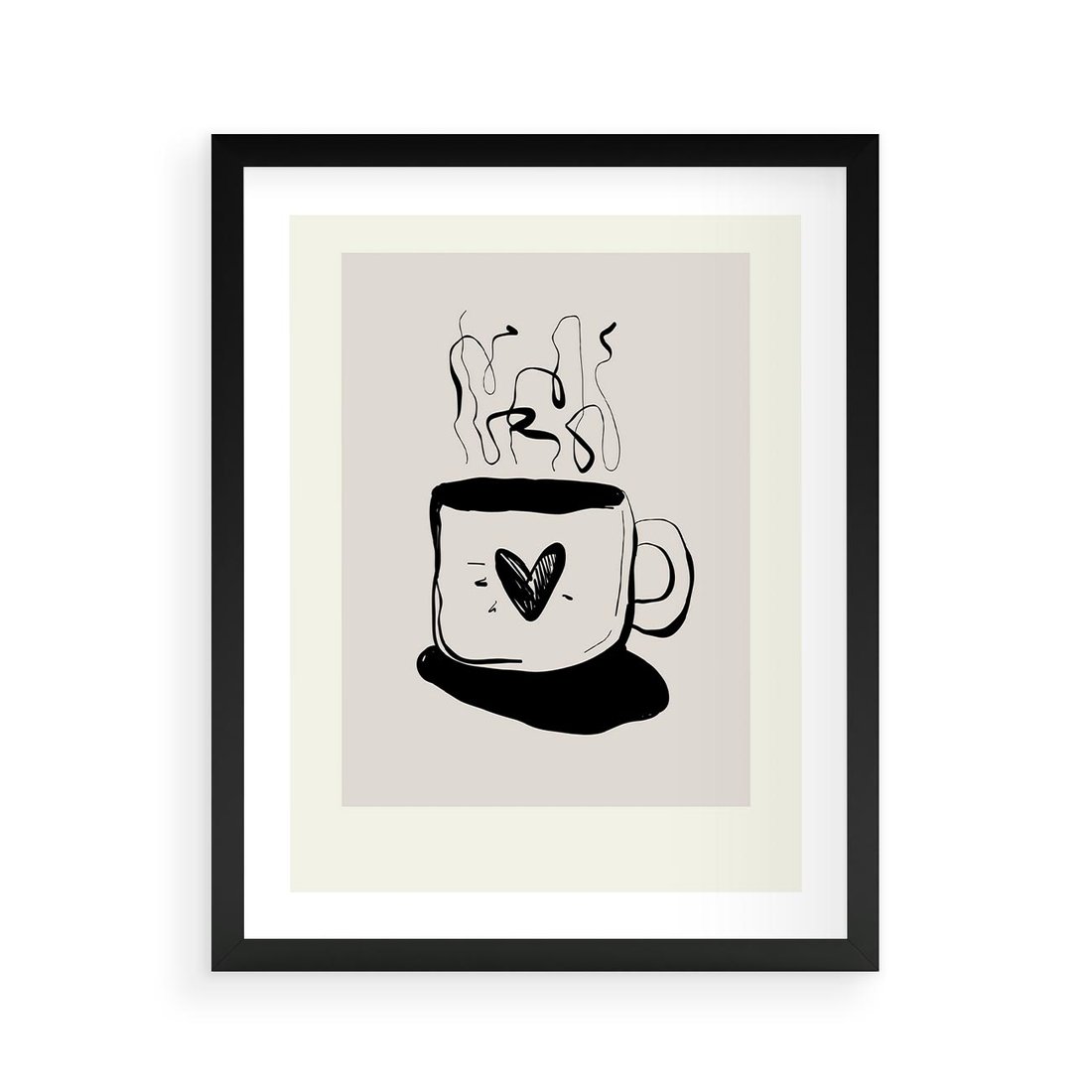 Plakat w ramie 40x50 - Grafika Kubka w Czerni i Bieli - kubek, grafika - rama czarna