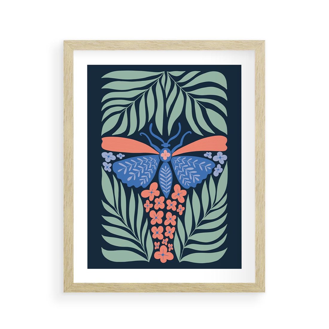 Plakat w ramie 40x50 - Granatowa Noc - granatowe tło, abstrajcyjna ćma - rama drewno