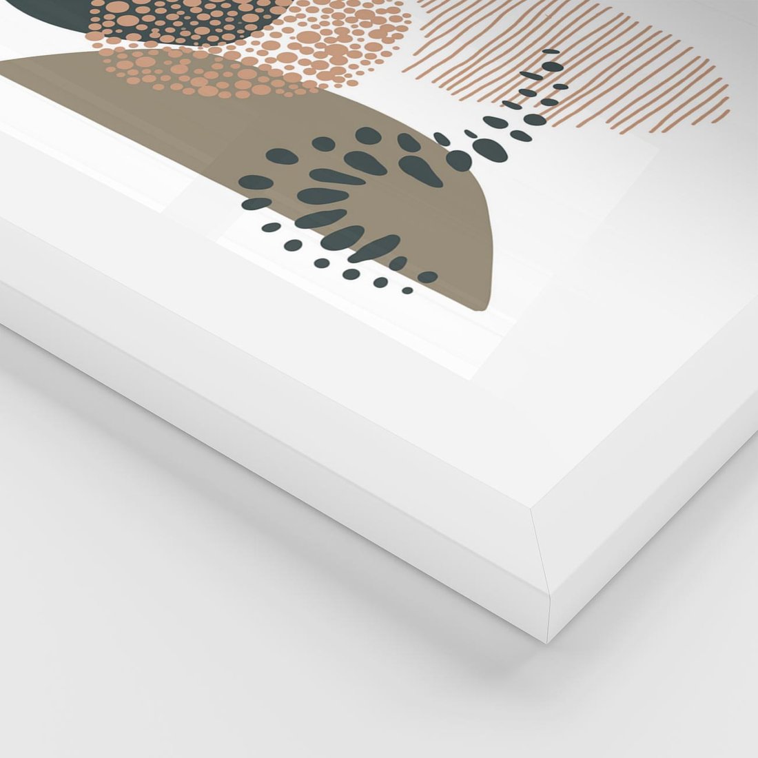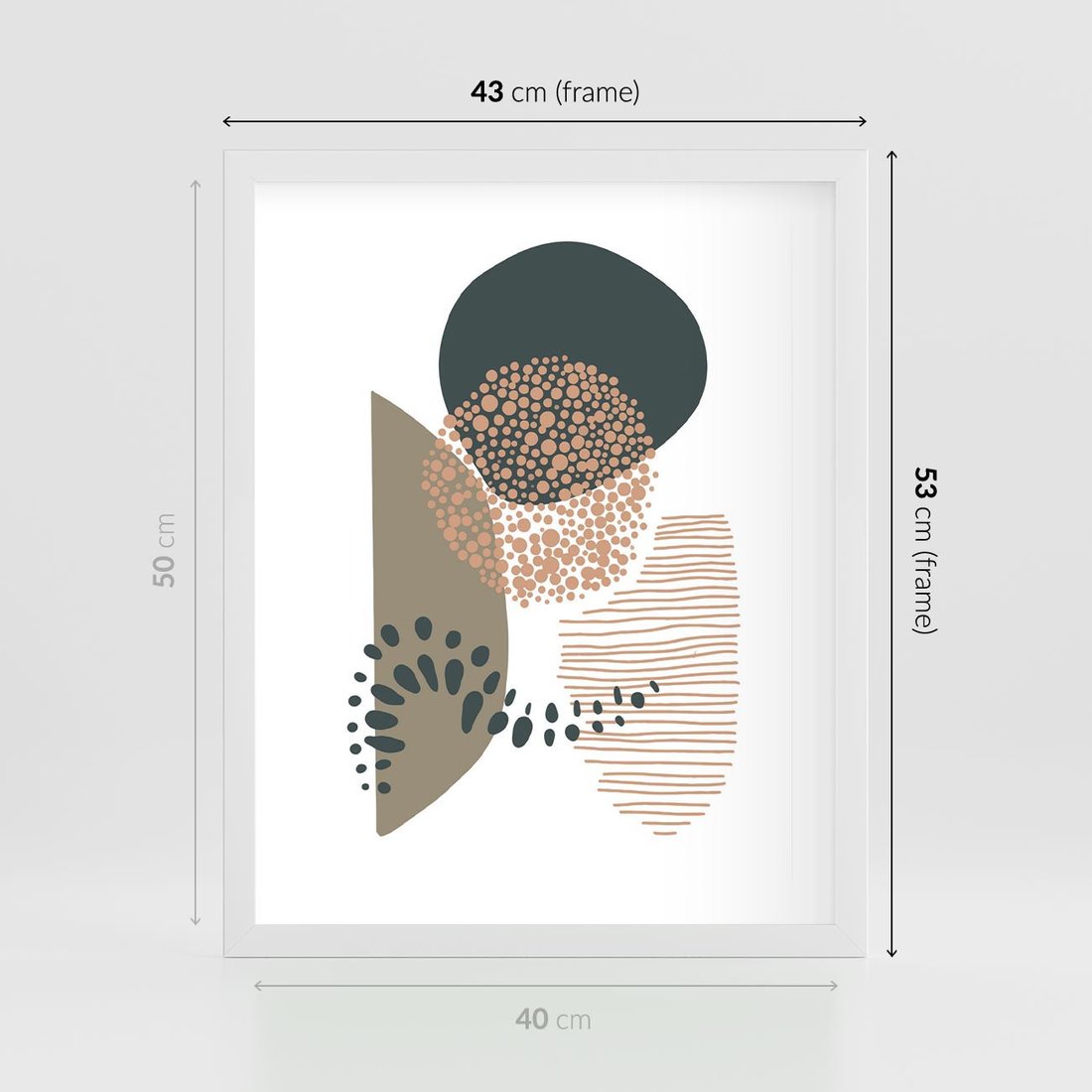 Plakat w ramie 40x50 - Harmonia Akwarelowych Przestrzeni - abstrakcyjna kompozycja z kropek kresek i kółek, odcienie brązu i beżu - rama biała