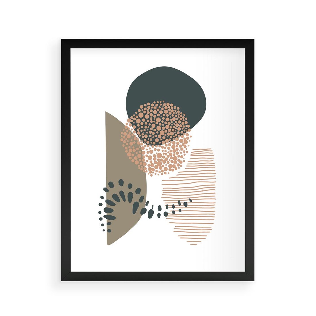 Ta abstrakcyjna kompozycja składa się z delikatnych kropek, kresek i kółek, w stonowanych odcieniach brązu i beżu. Przenosi spokój i harmonię, emanując minimalistycznym pięknem do każdego wnętrza.