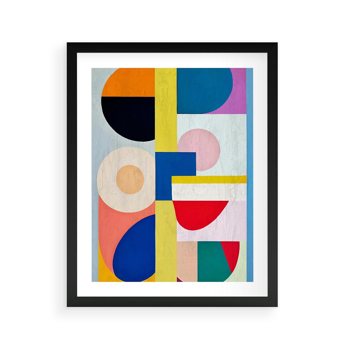 Plakat w ramie 40x50 - Harmonia Kolorowych Impulsów - abstrakcyjne geometryczne kształty, olejny obraz - rama czarna