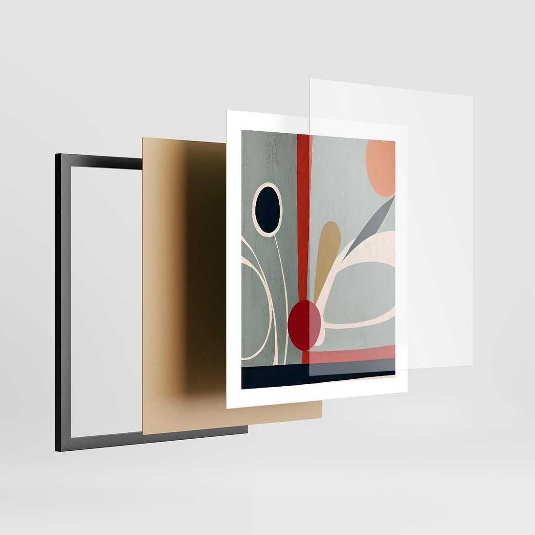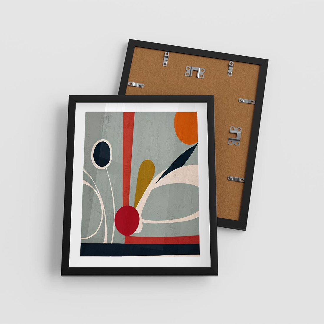 Plakat w ramie 40x50 - Harmonia Kolorowych Impulsów - abstrakcyjny obraz olejny, dziwne formy - rama czarna
