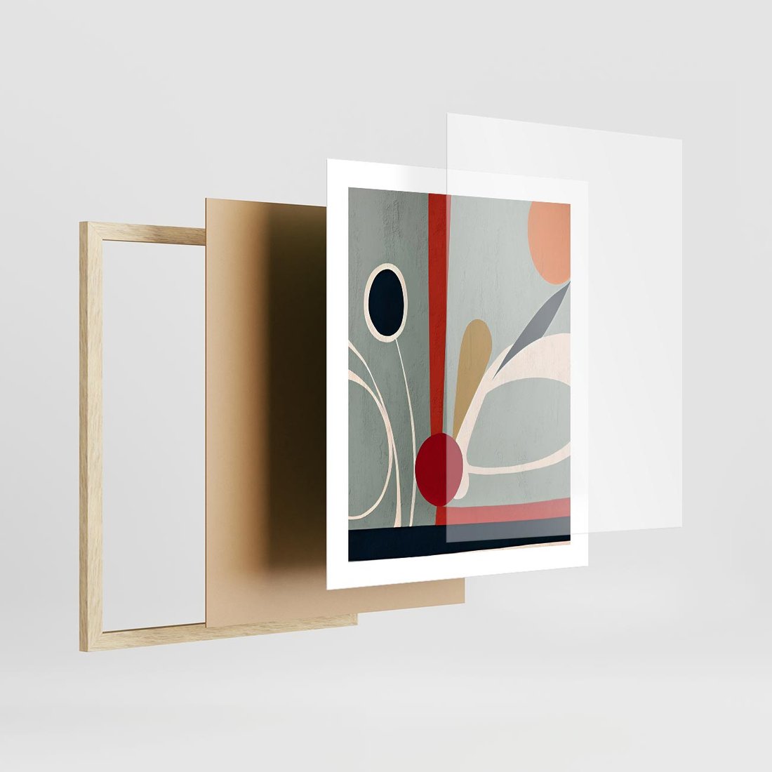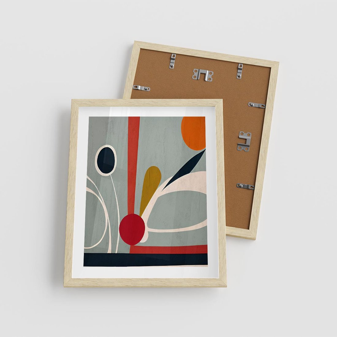 Plakat w ramie 40x50 - Harmonia Kolorowych Impulsów - abstrakcyjny obraz olejny, dziwne formy - rama drewno