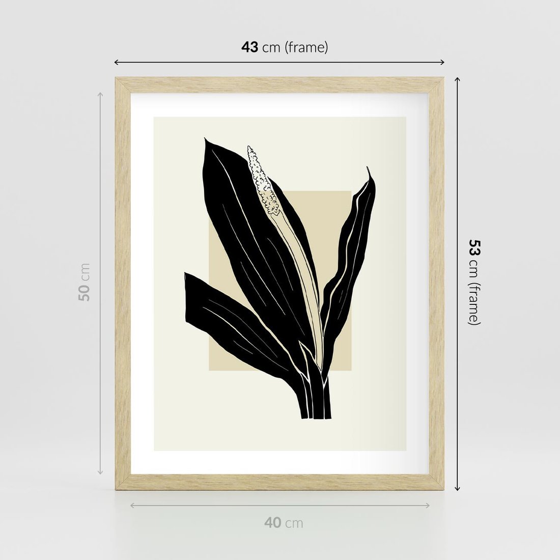 Plakat w ramie 40x50 - Harmonia liści - minimalistyczny obraz, szkic - rama drewno