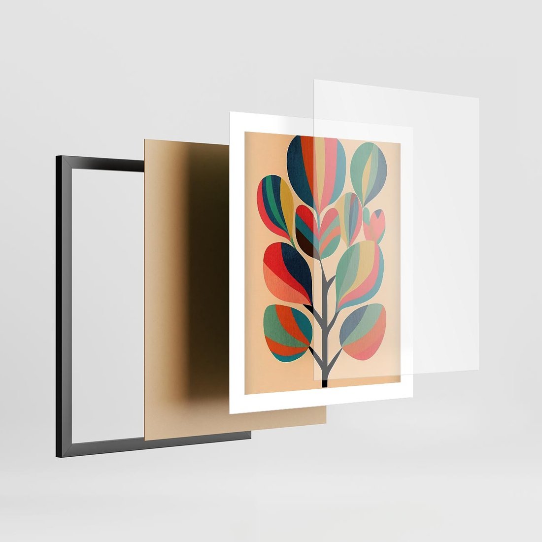 Plakat w ramie 40x50 - Harmonia Rozplątanych Form - abstrakcyjny kolorowy tęczowy obraz, inspiracje roślinne - rama czarna