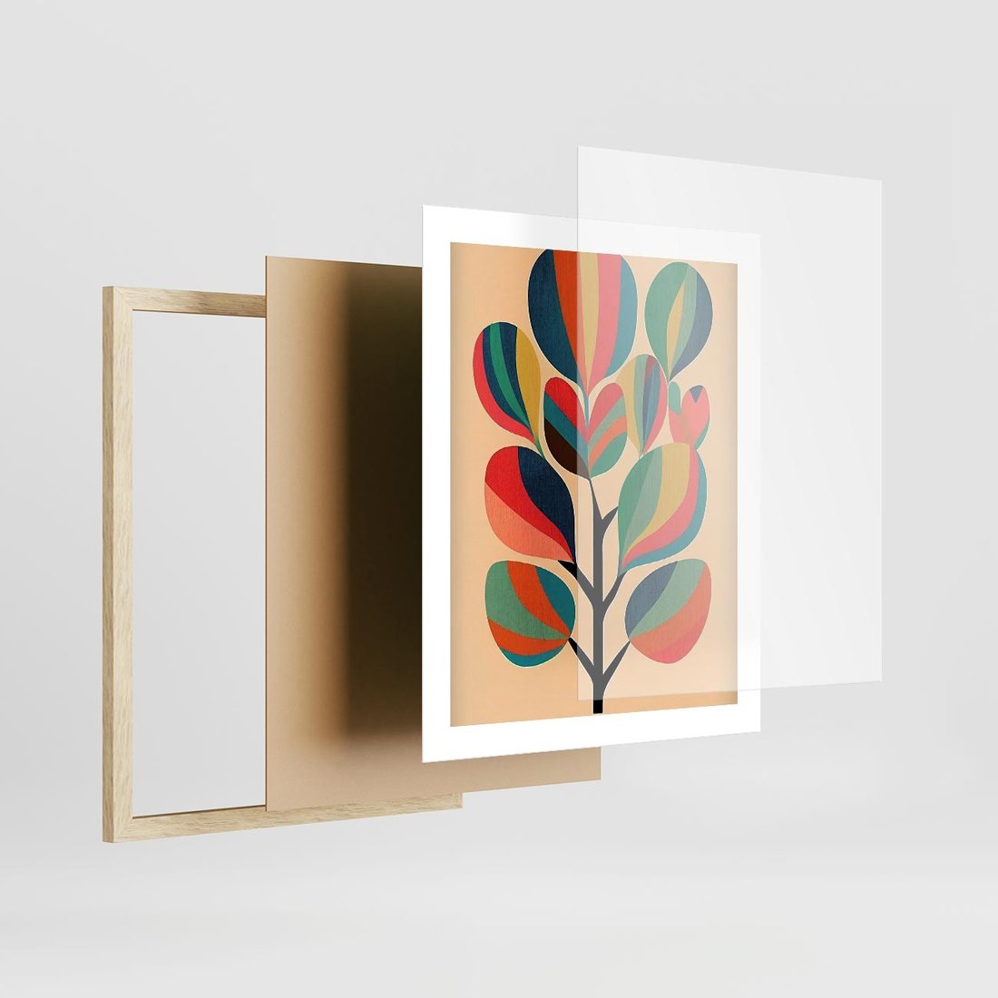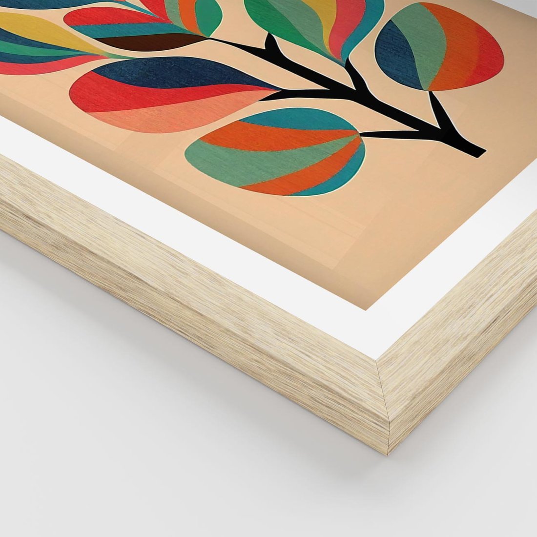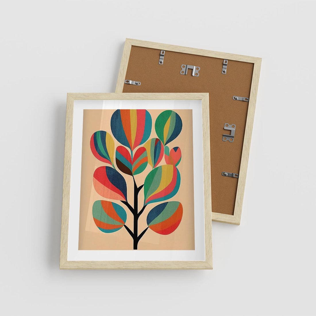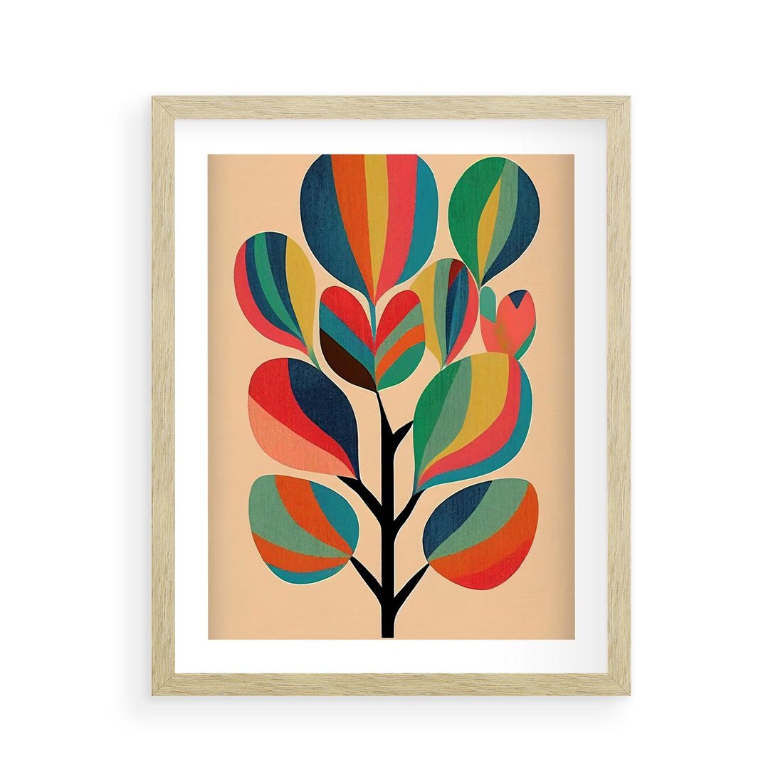 Plakat w ramie 40x50 - Harmonia Rozplątanych Form - abstrakcyjny kolorowy tęczowy obraz, inspiracje roślinne - rama drewno