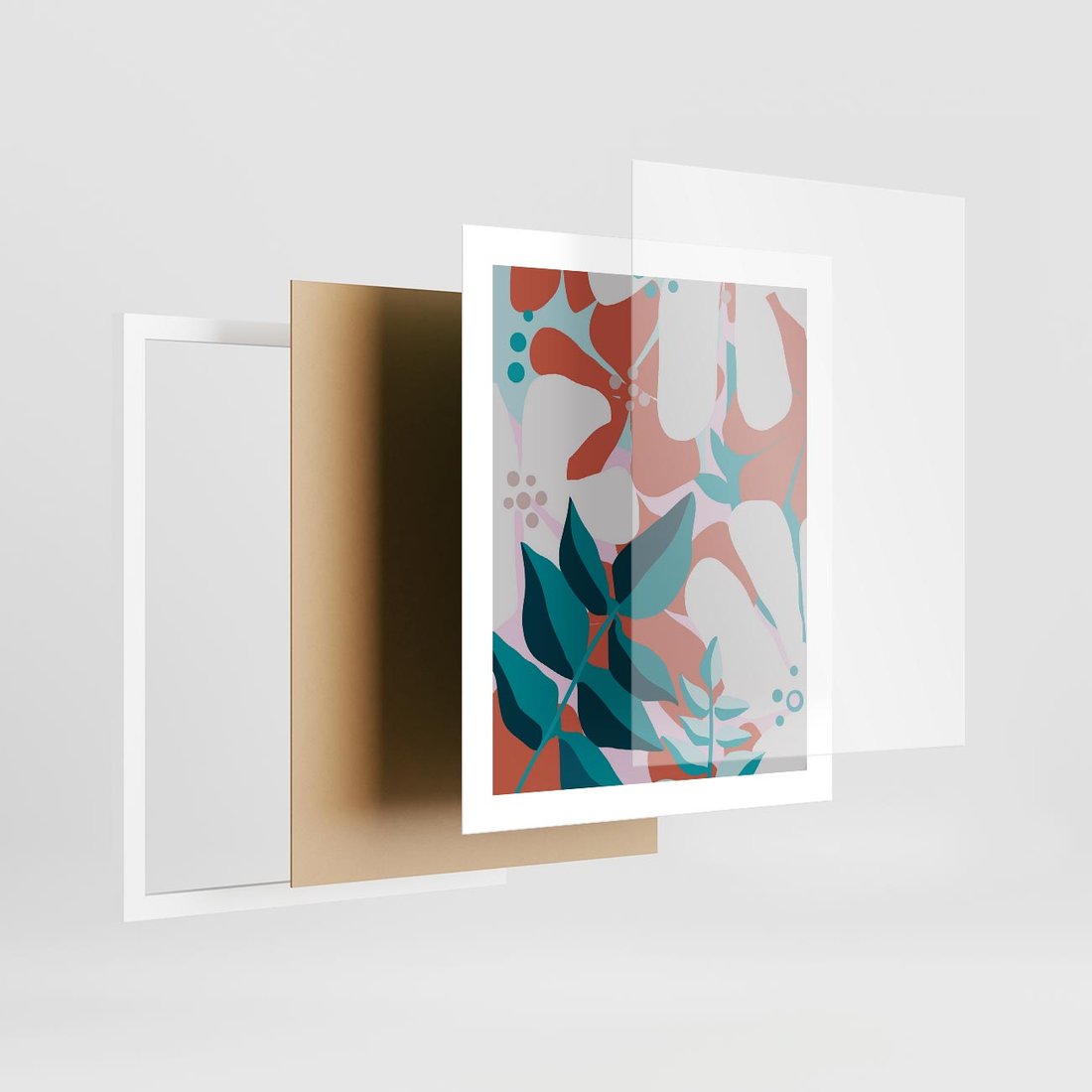 Plakat w ramie 40x50 - Harmonijne Formy - abstrakcyjna kompozycja kwiatowych form, kolor zgaszone - rama biała