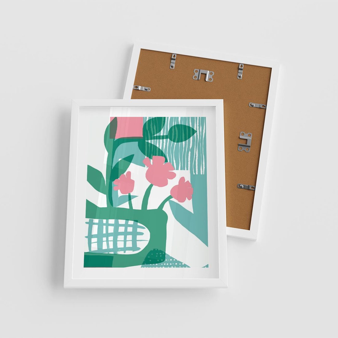Plakat w ramie 40x50 - Harmonijne Plamy - abstrakcyjne pastelowe kwiaty, nowoczesna sztuka - rama biała