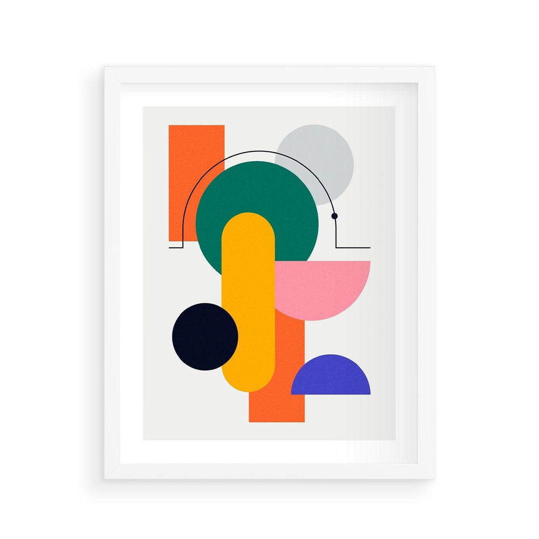 Nasz plakat to nowoczesna sztuka w duchu Bauhausu, prezentująca geometryczną kolorową grafikę. To wyjątkowe połączenie form i kolorów, które oddaje esencję artystycznego ruchu i wprowadzi dynamiczną estetykę do Twojej przestrzeni.