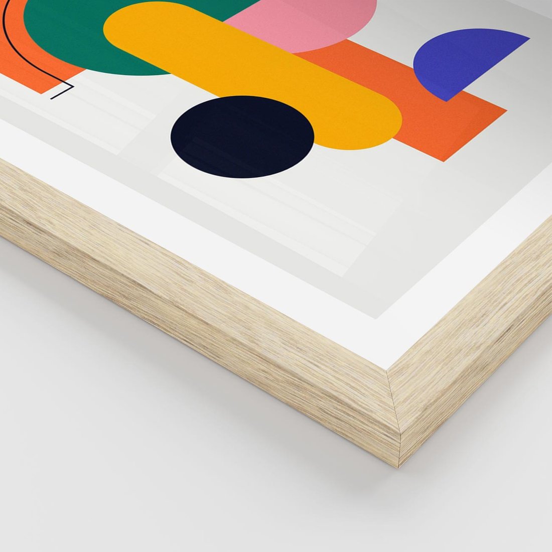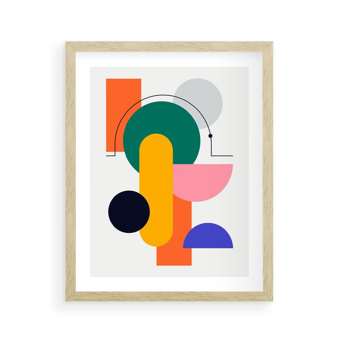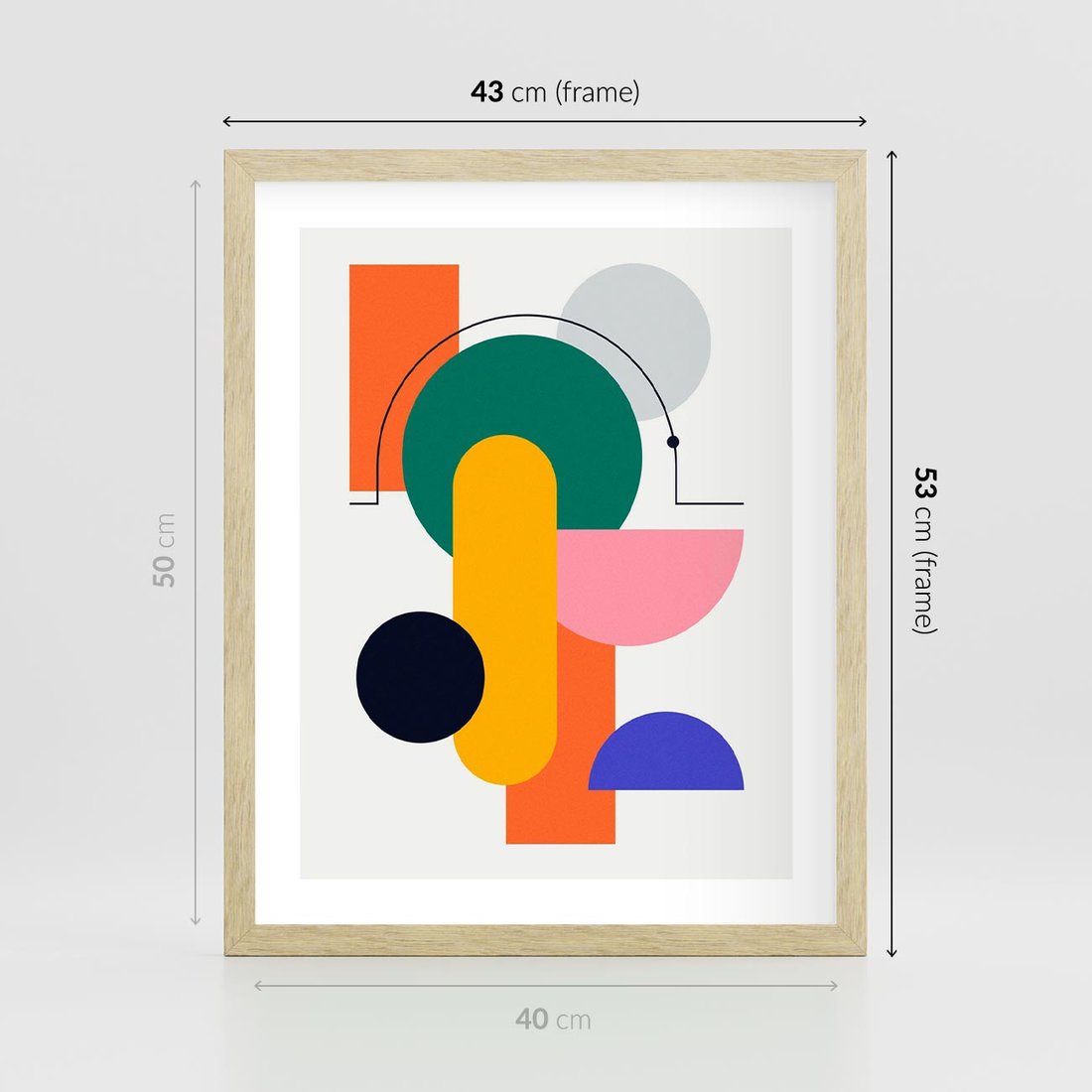 Plakat w ramie 40x50 - Harmonijne Przenikanie Form - nowoczesna sztuka, geometryczna kolorowa grafika - rama drewno