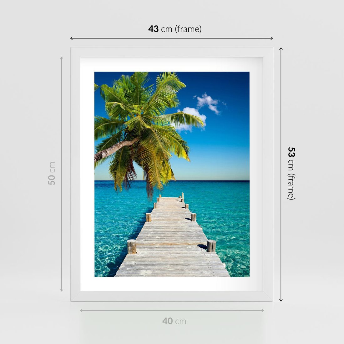 Plakat w ramie 40x50 - Hawajskie Palmy - palma, morze - rama biała