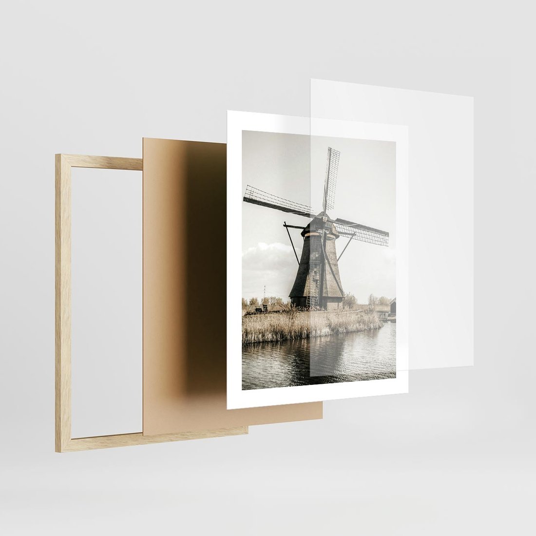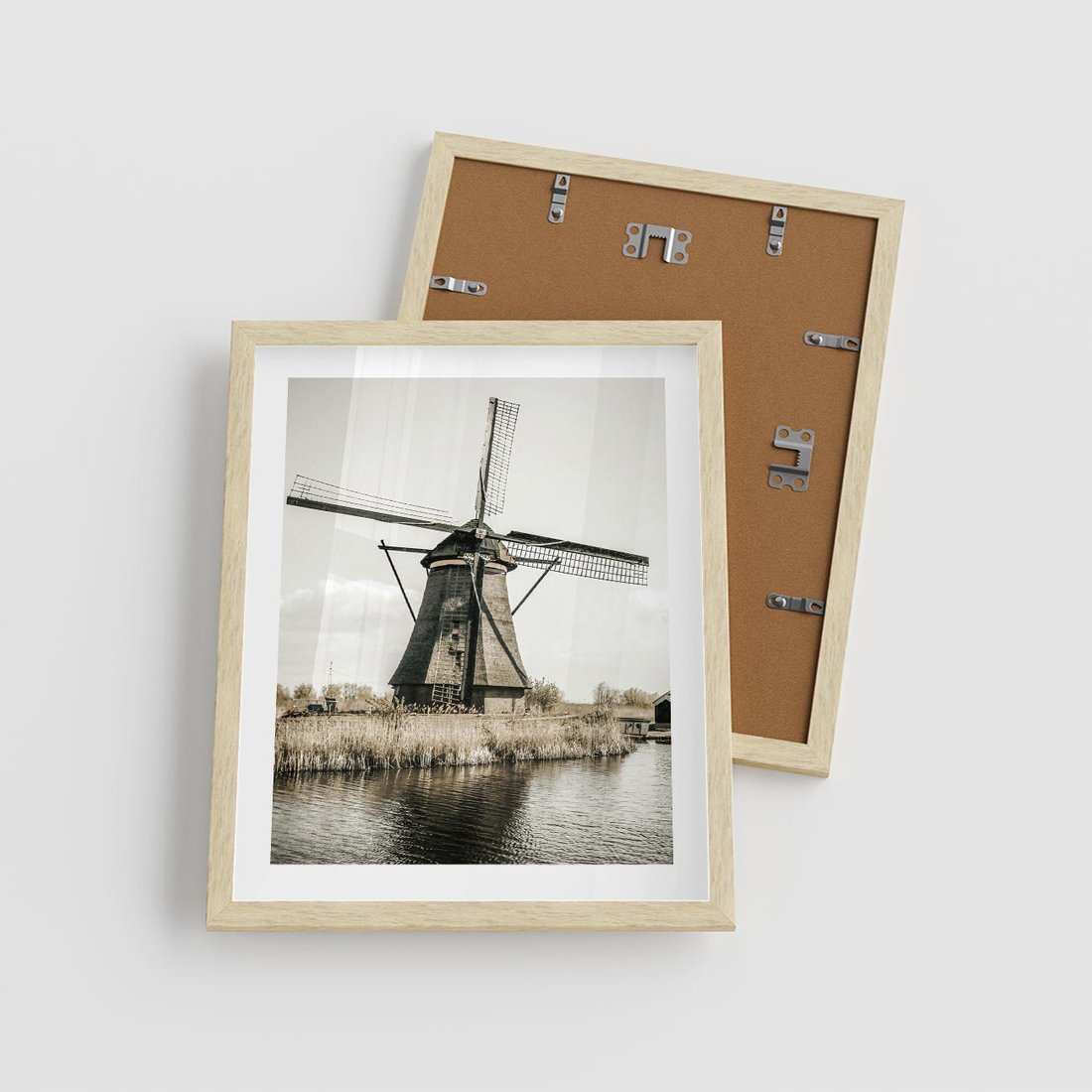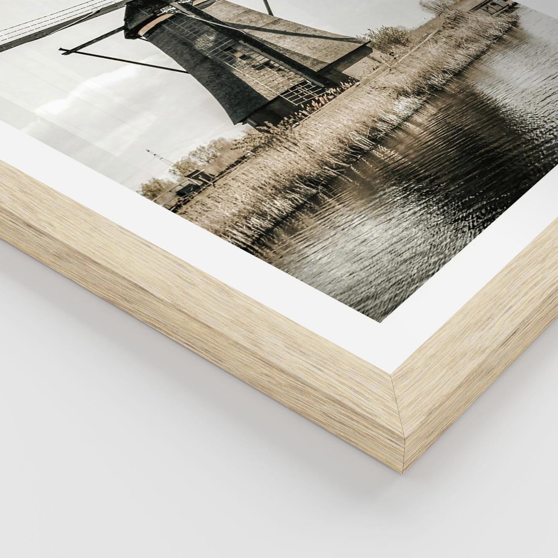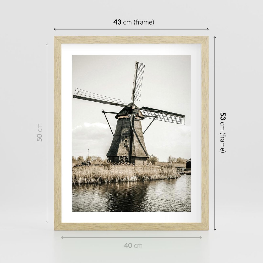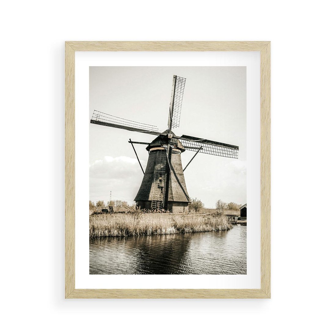 Plakat w ramie 40x50 - Holenderski Wiatrak w Sepii - holenderski wiatrak, młyn - rama drewno