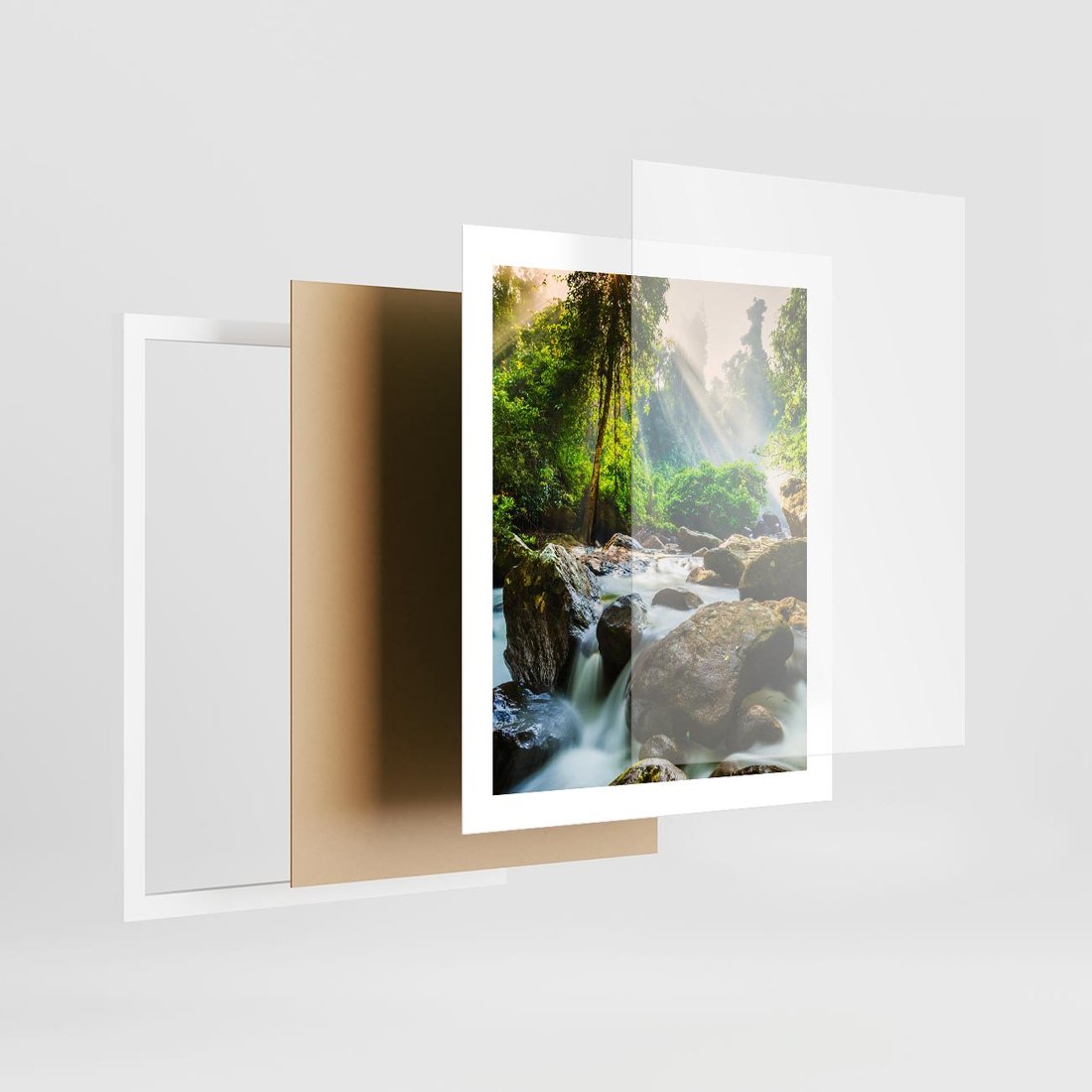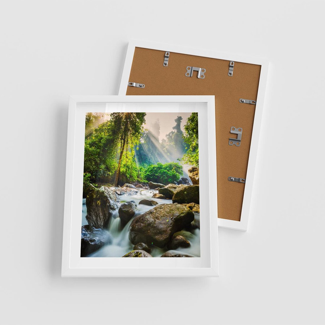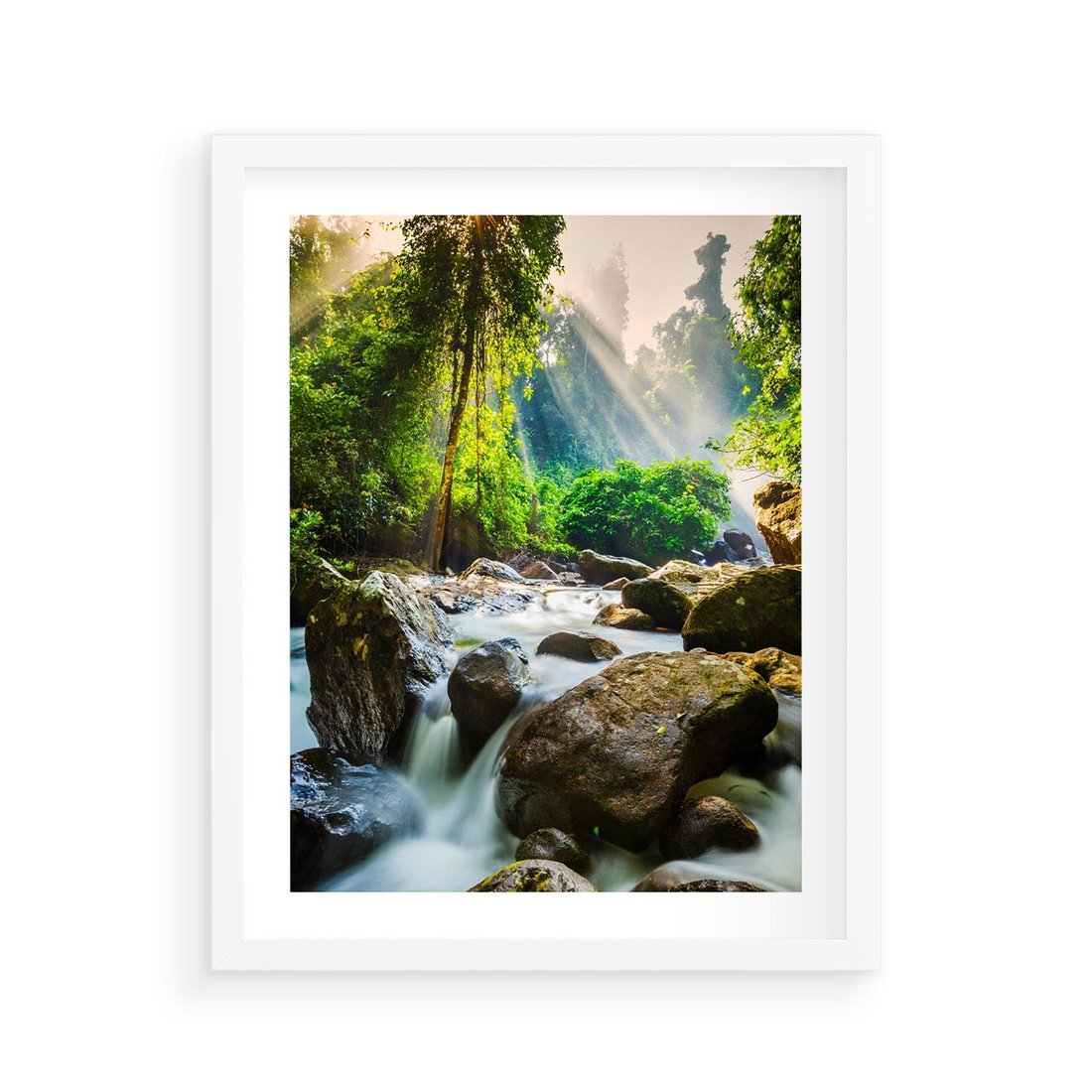 Plakat w ramie 40x50 - Idylliczny strumyk w urokliwym lesie - strumyk, las - rama biała