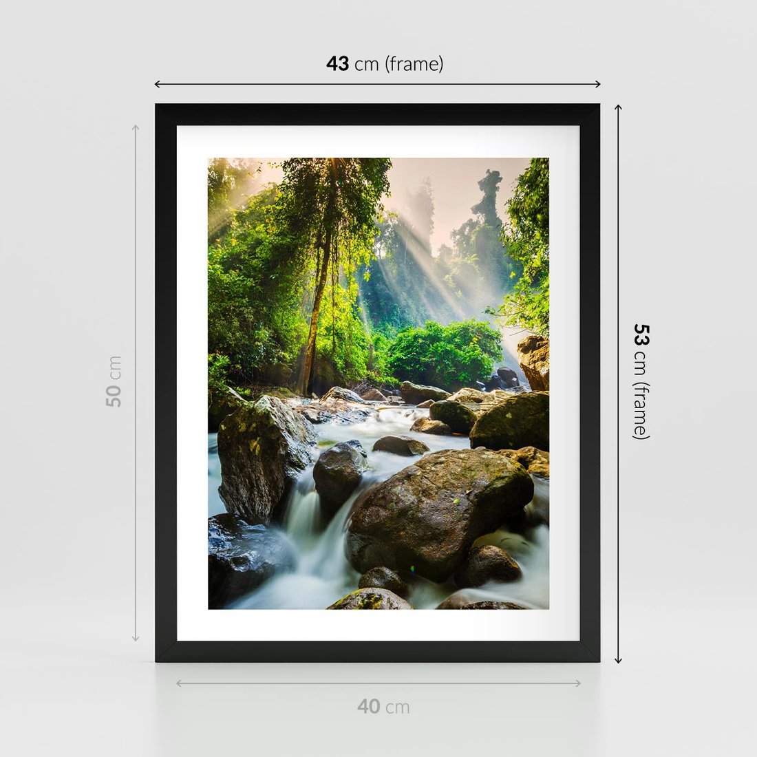 - Plakat w ramie 40x50 - Idylliczny strumyk w urokliwym lesie