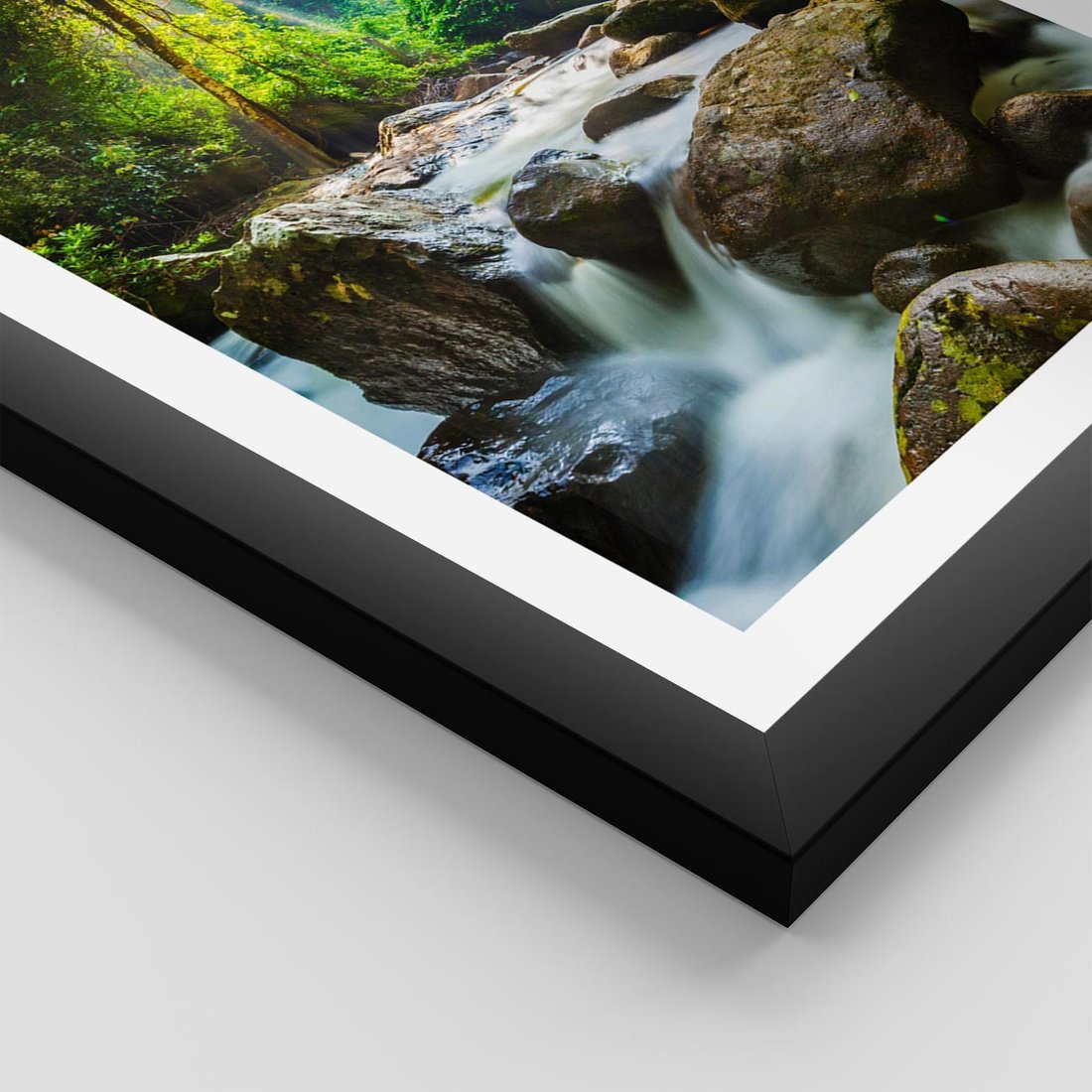 Plakat w ramie 40x50 - Idylliczny strumyk w urokliwym lesie - strumyk, las - rama czarna