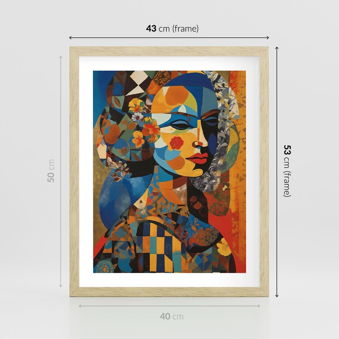 Plakat w ramie 40x50 - Impresje Cichego Szeptu - abstrakcyjny obraz, portret kobiety - rama drewno
